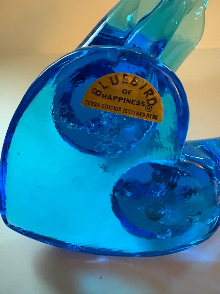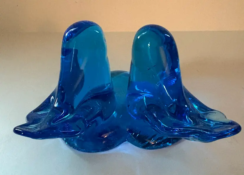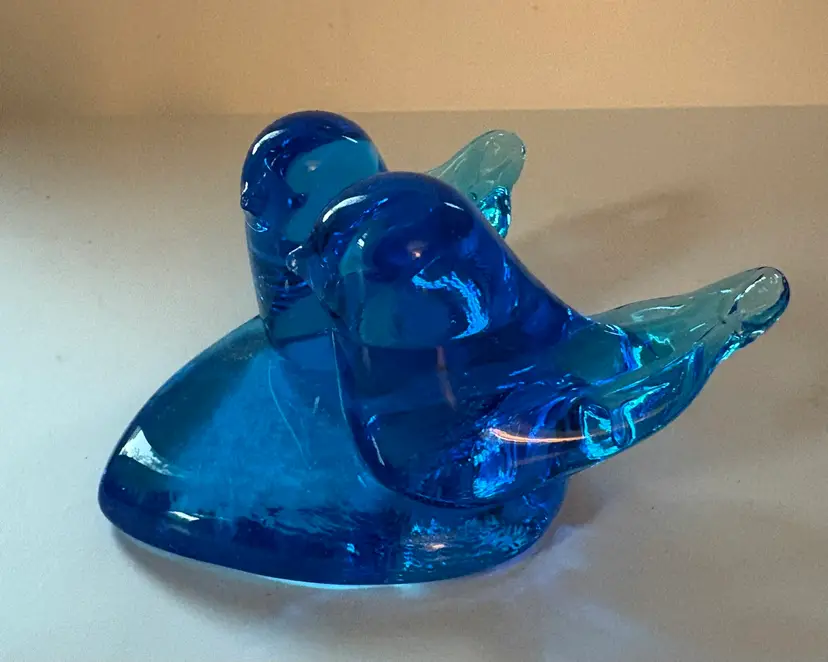 Double bluebird of happiness, glass statue by Leo Ward. Why not have double the happiness? Item is an excellent condition.