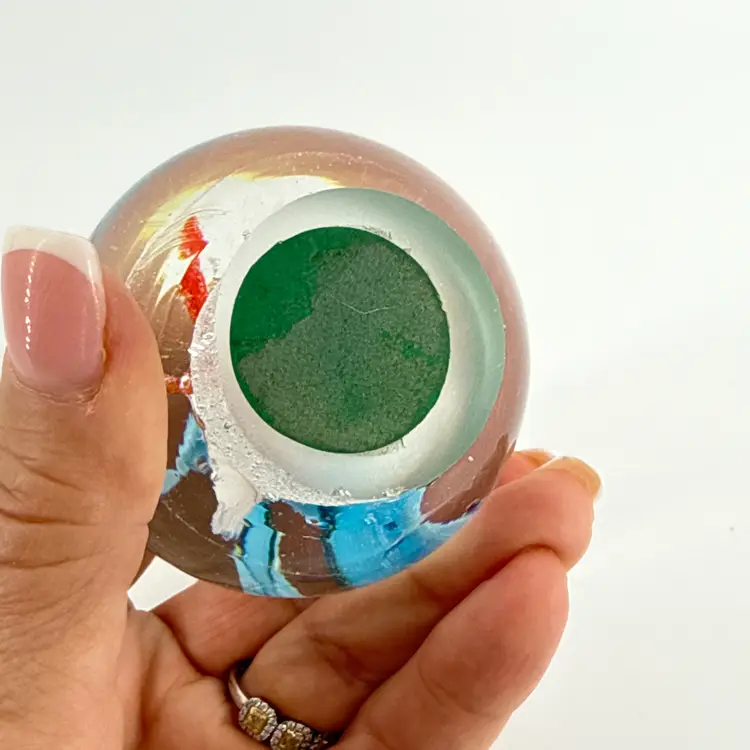It measures 2.5" in diameter and is in good condition. There are a few small circular bruises. (See photos).