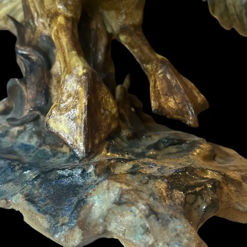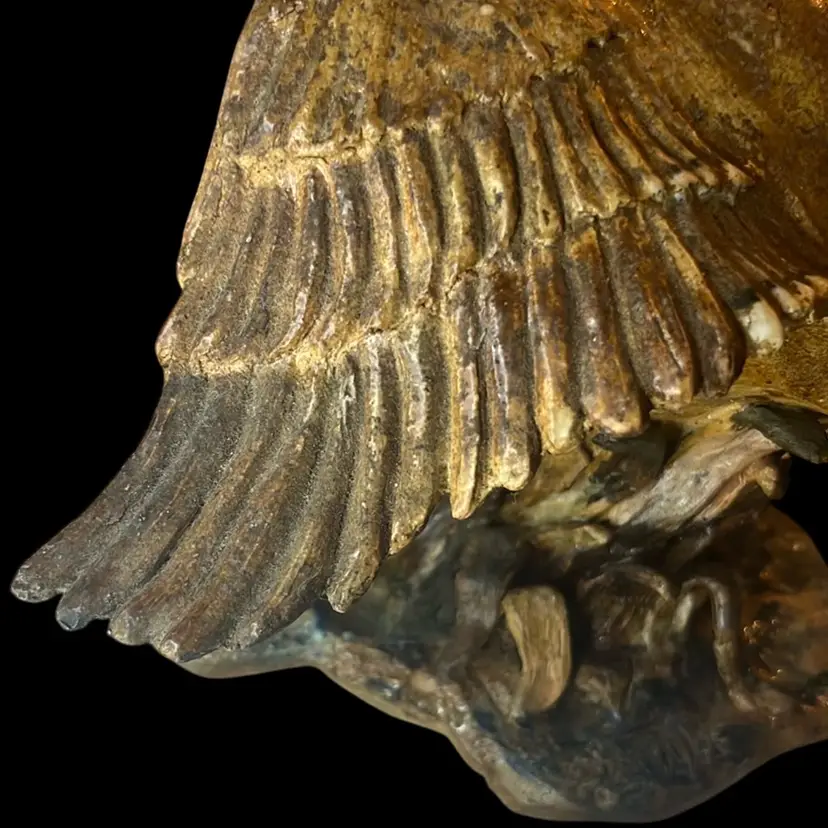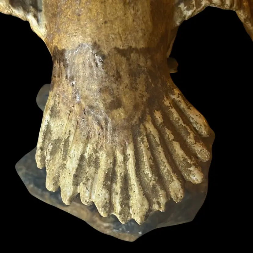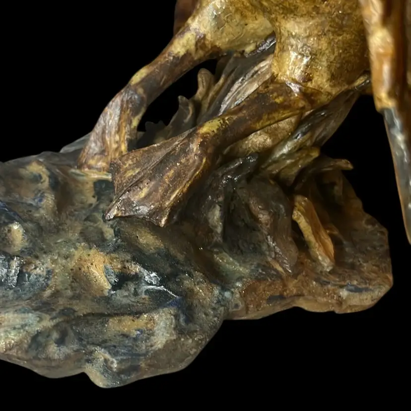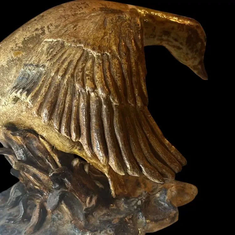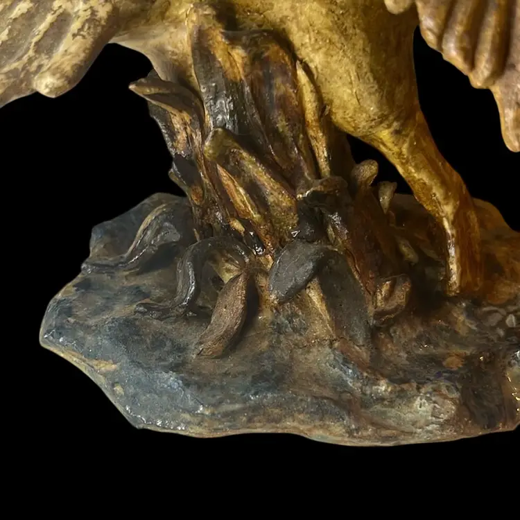 Really unique sculpture of duck taking flight/landing. Unsigned, super cool. Appears to have been previously mounted on top of a stand. Realistically styled, great attention to the details of the feathers. Maybe Veryl Goodnight?