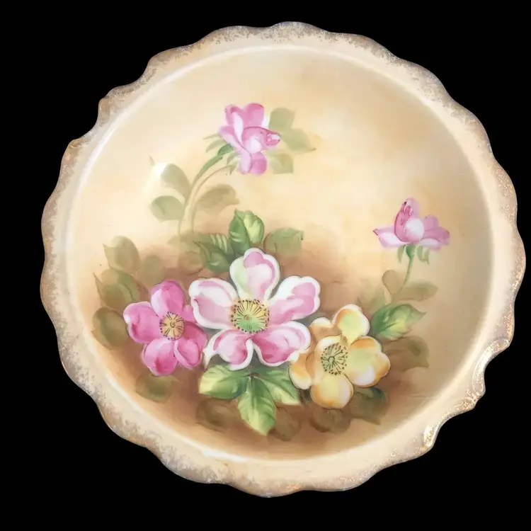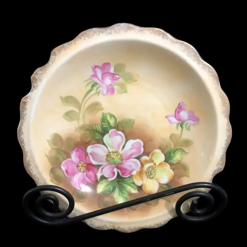Beautiful vintage porcelain plate featuring hand-painted floral designs. Perfect for collectors or as a charming decor piece on a gallery wall.