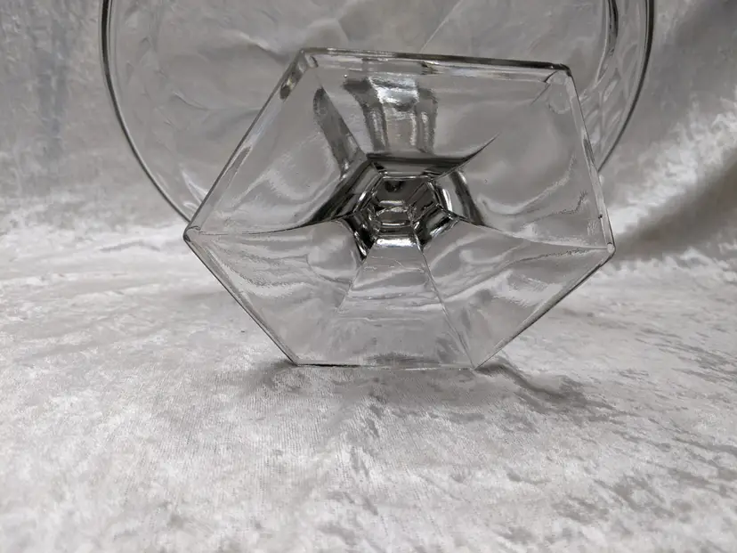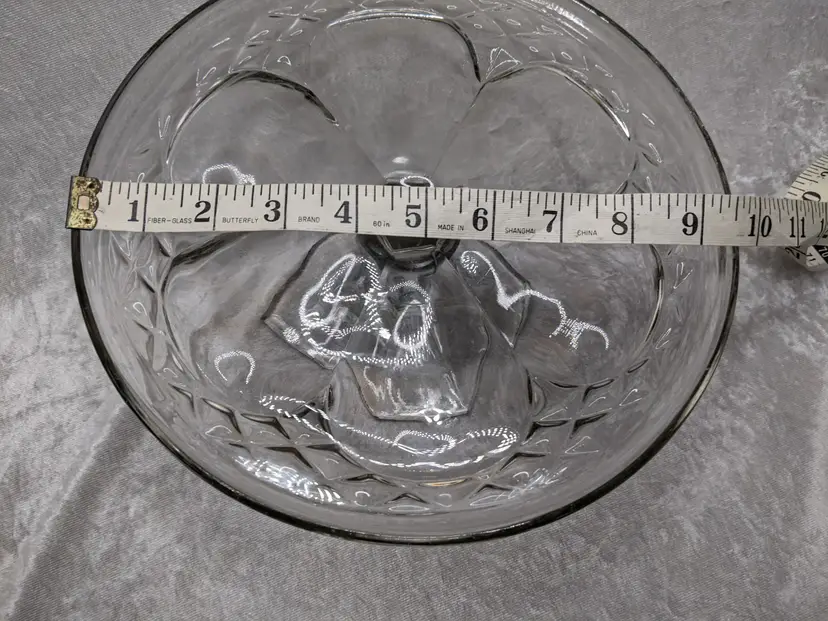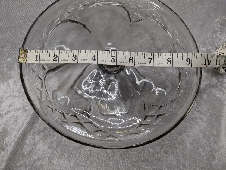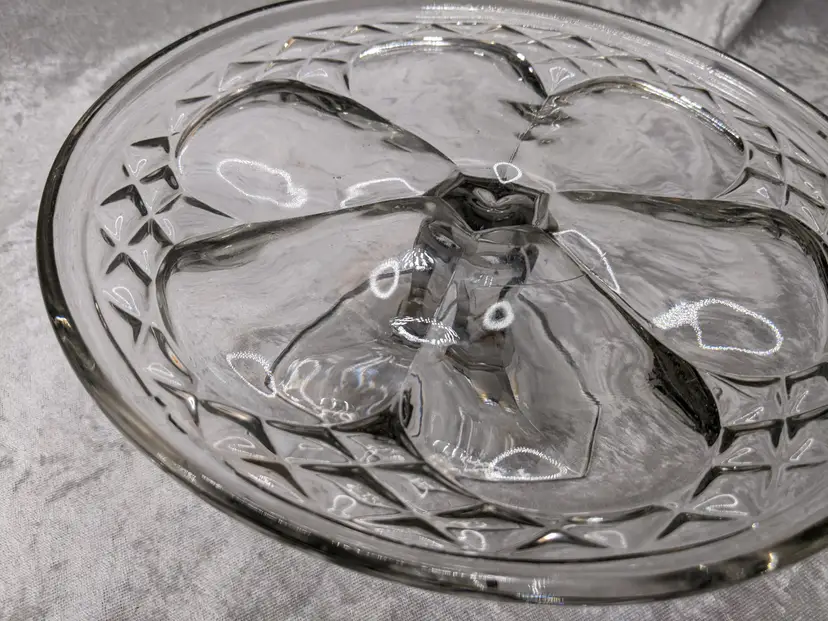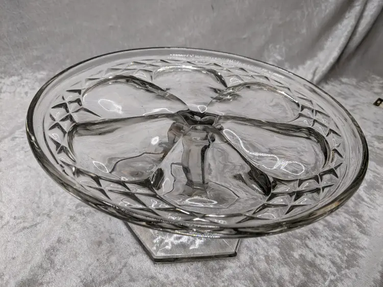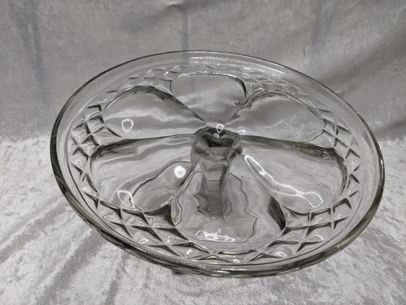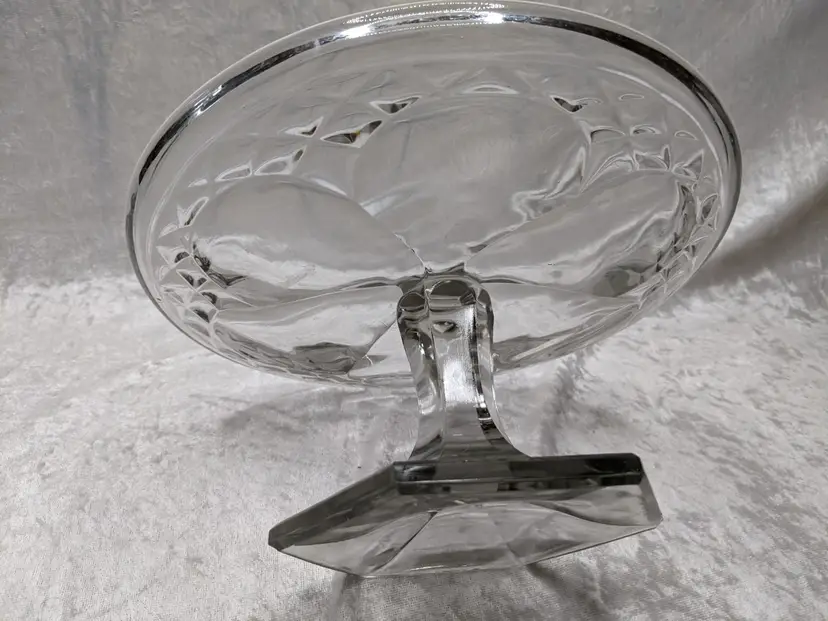 Early American Pressed Glass Pedestal Cake dish Plate Federal by Martinsville Glass Clear Heavy Flower Diamond pattern. . Would make a wonderful Holiday Gift or on your own holiday table. I do not no much about it I have researched it but can't find one like it.it measures 10 in wide with a high rim and 41/4in tall. Great condition Clean with no damage.no chips or cracks no weird smells. Please check the photos for details. Comes from a smoke free home. We do have pets.