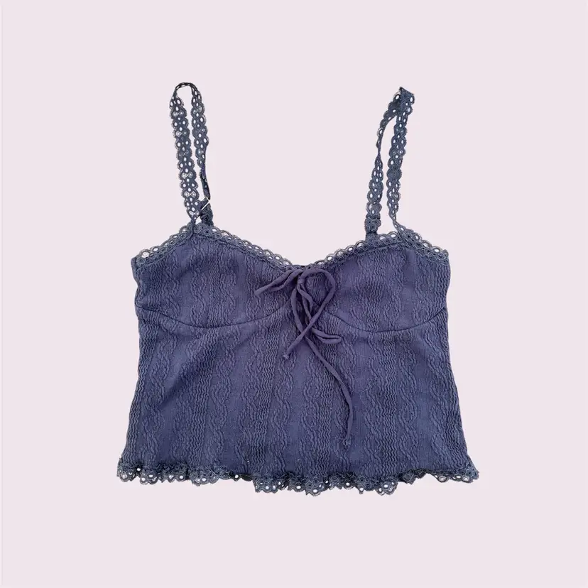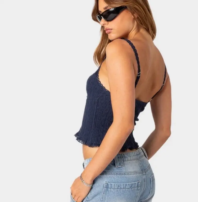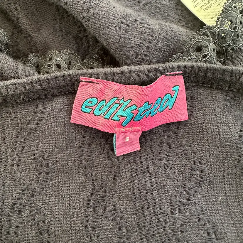 EDIKTED Lacey tank top Cropped mini with lace detail, sweetheart neckline Size small with stretch No stains or tearing Pit to pit - 13” Length - 17” measured with strap