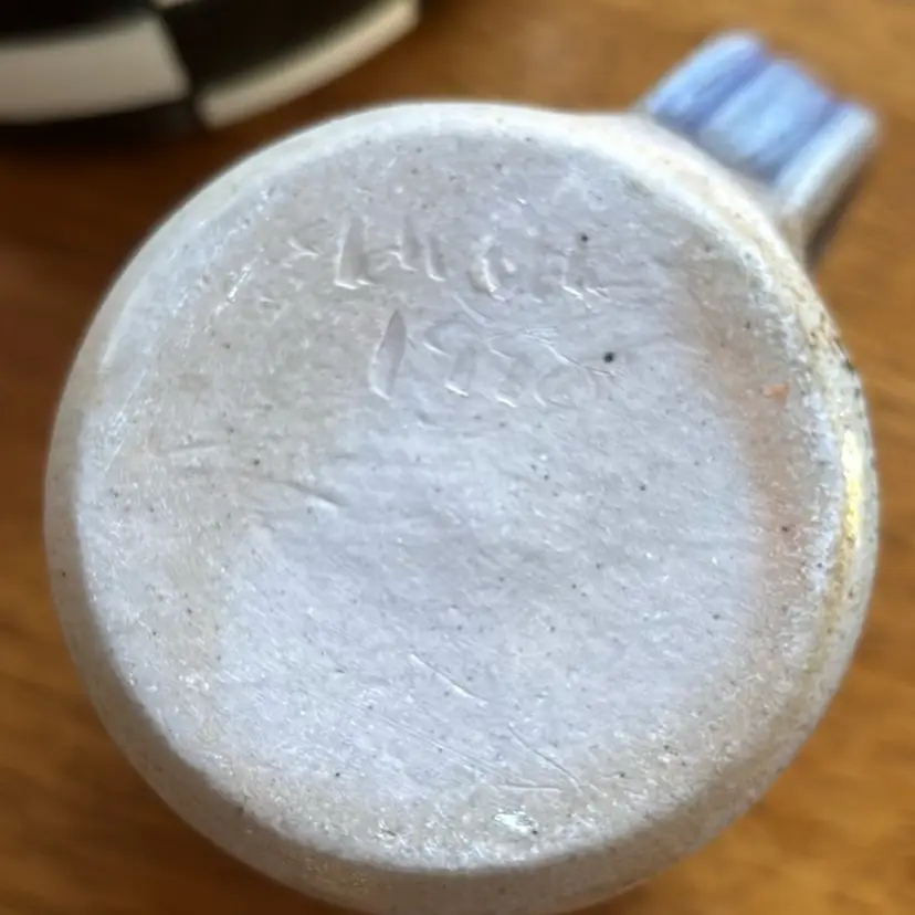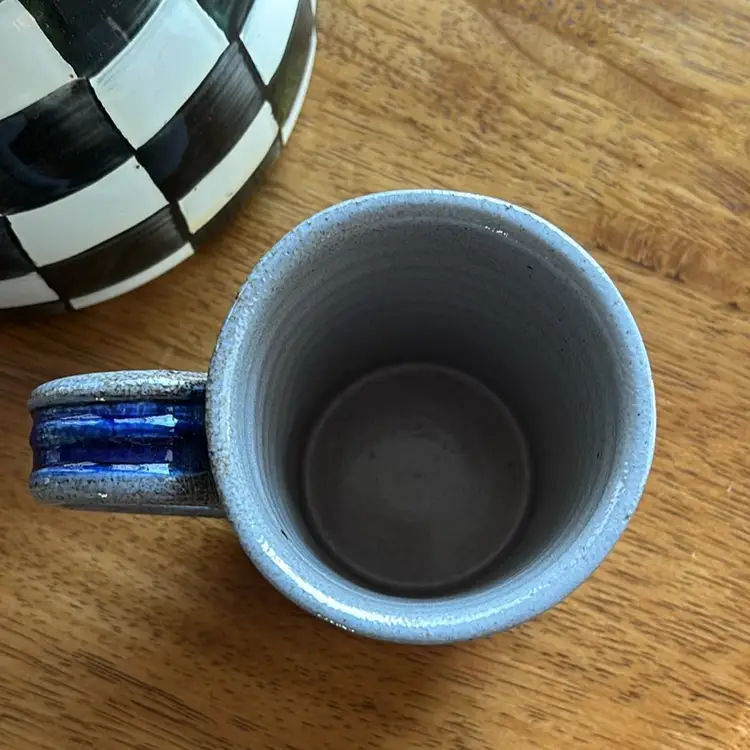 Collectible Eldreth Pottery Mug signed dated 1997. Salt glazed navy accent. Measures 4” high. No chips or cracks.