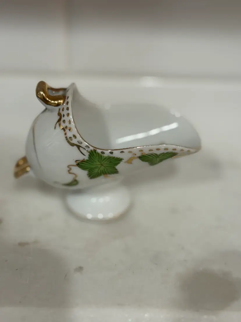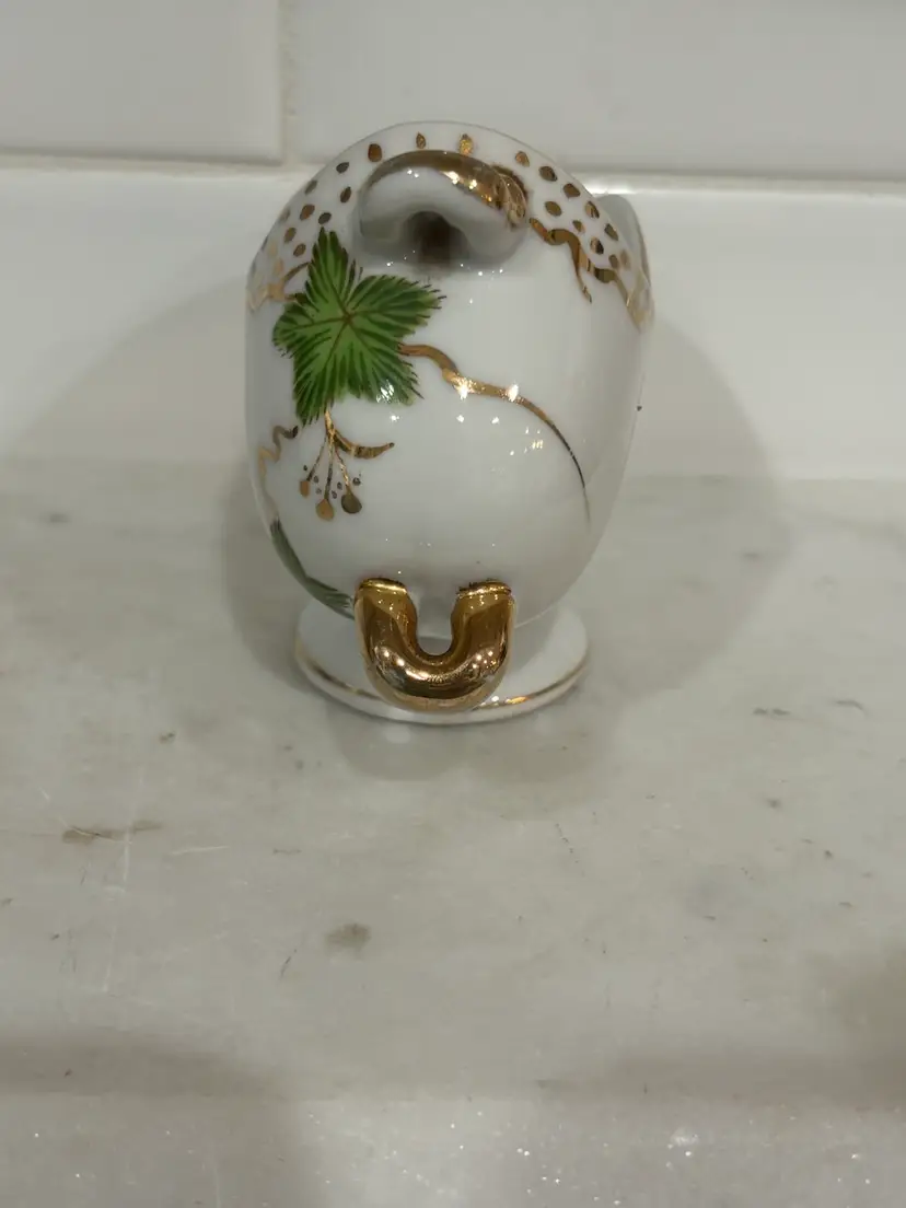 Elegant Green And Gold Porcelain Sugar Or Creamer