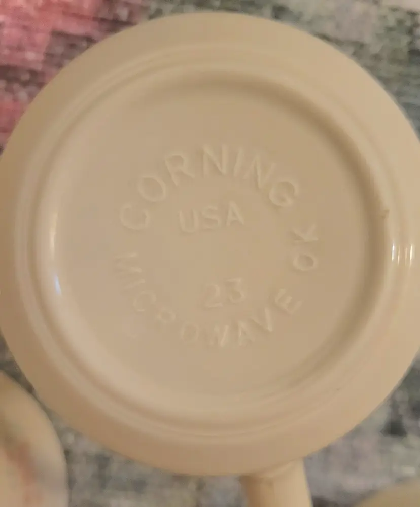 4 mugs with a sweet blue & pink floral design. Good vintage condition. 90's goodness.