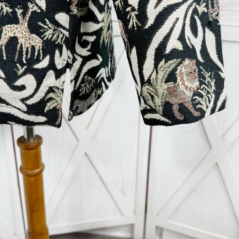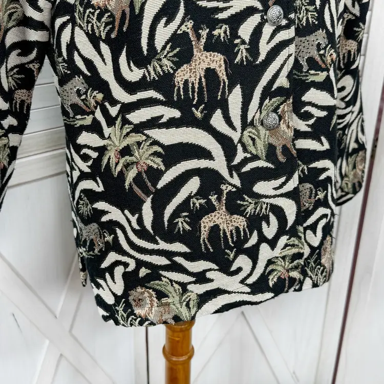 Erin London Vintage 90s Jacquard Tapestry Jungle Print Blazer Jacket Black