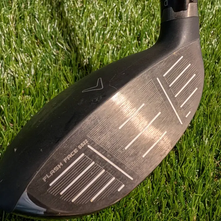 Club is pre-owned and shows light wear from simulator play. Only call out is a few chips on the crown as shown in the pictures which do not affect play. See pictures for condition. No dents or major scratches. Club has a stiff Tensei white shaft. This one also offers lie and loft adjustability which is a hard model to find.
