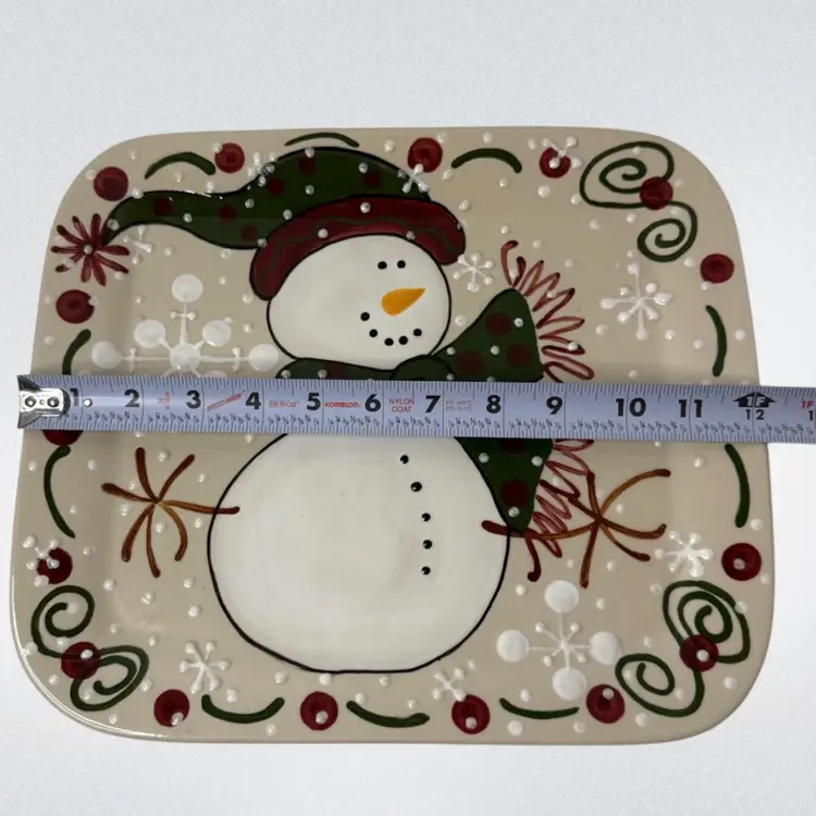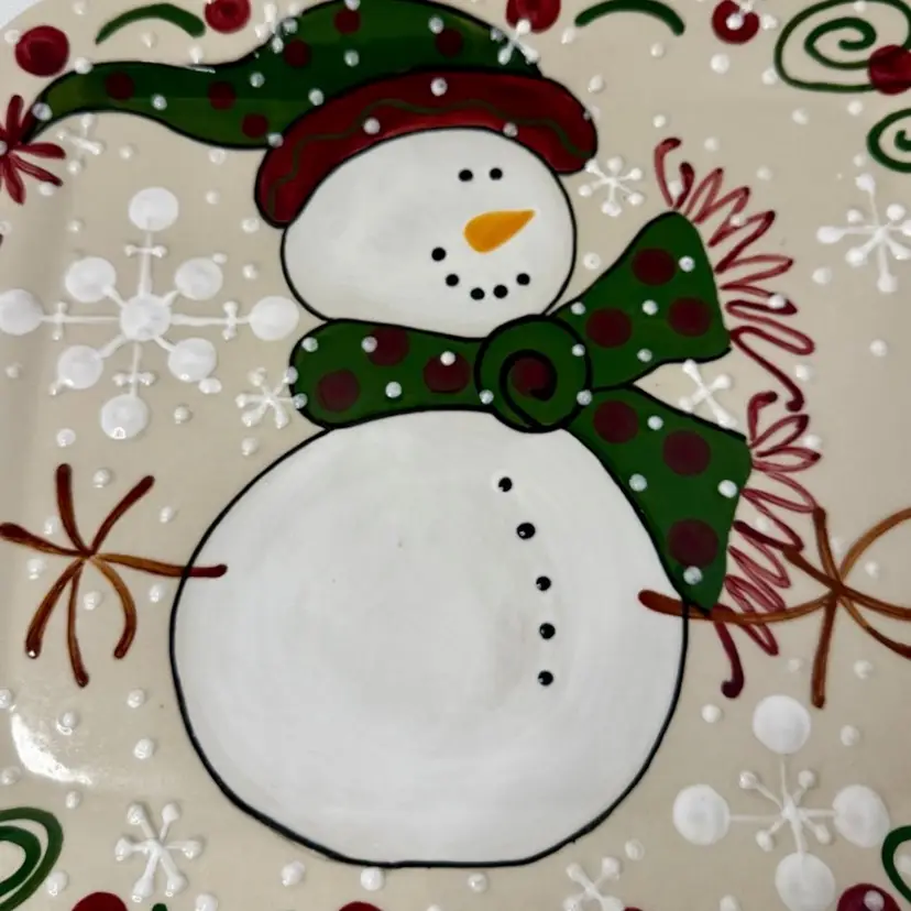 Whimsical snowman holiday serving plate signed and dated 2004.