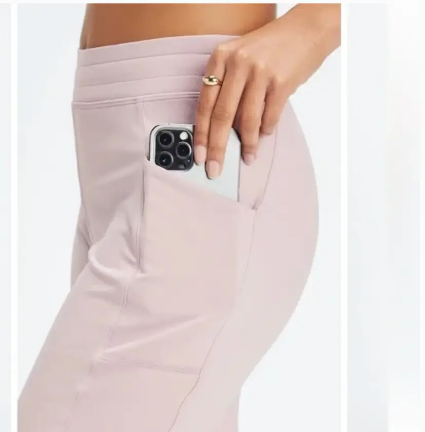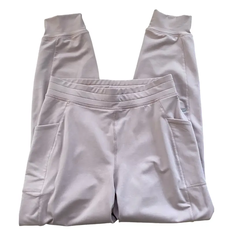 Joggers from Fabletics. High-waisted with side pockets on each leg. Pale pink color. Internal drawstring. Size small.
