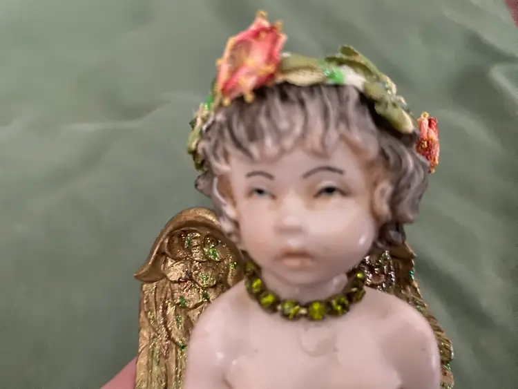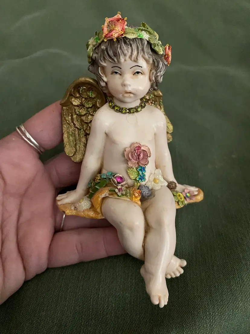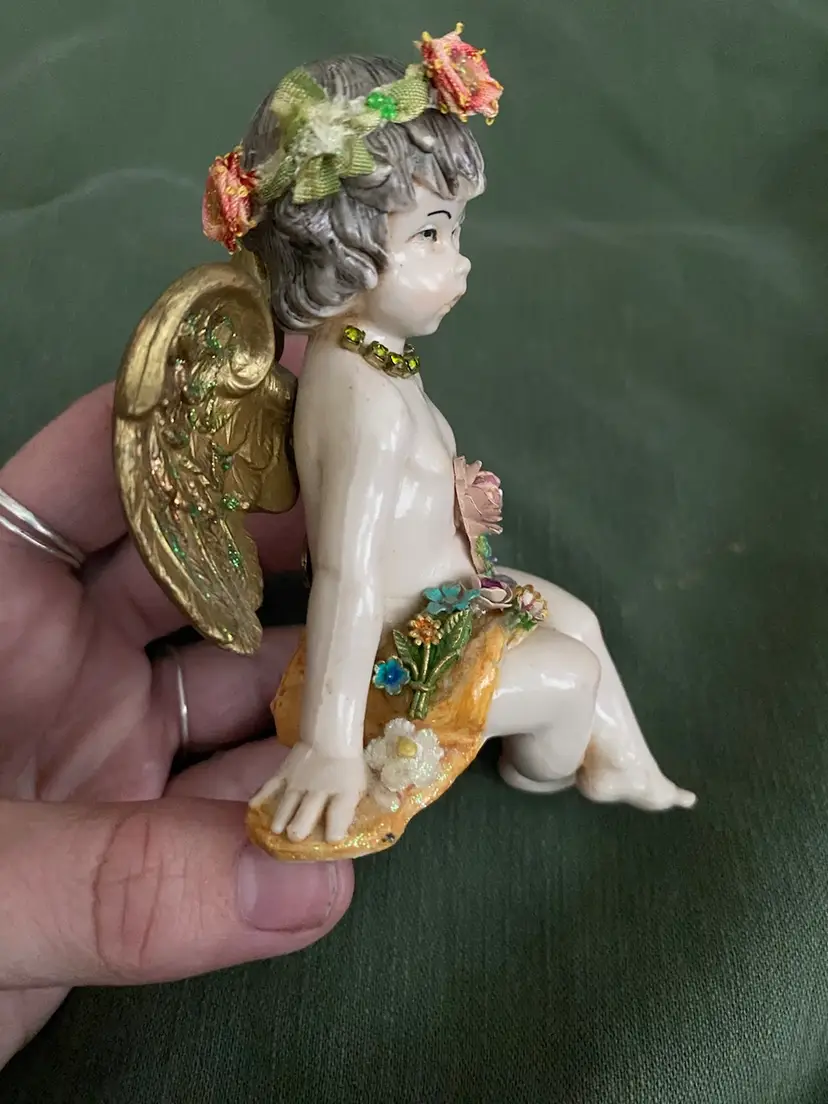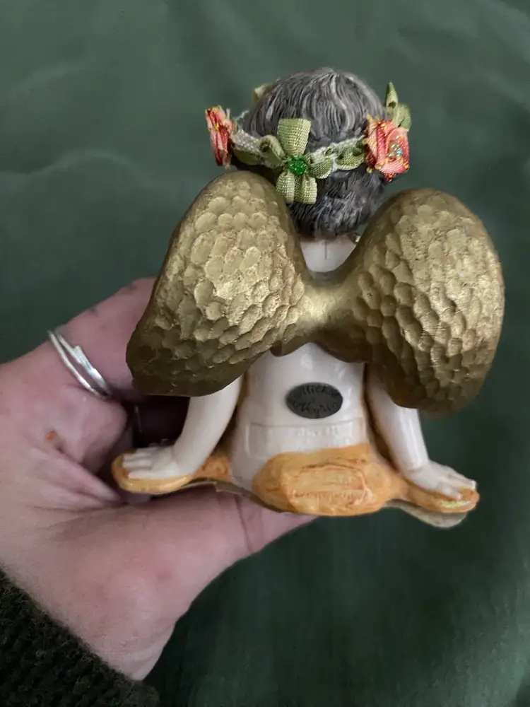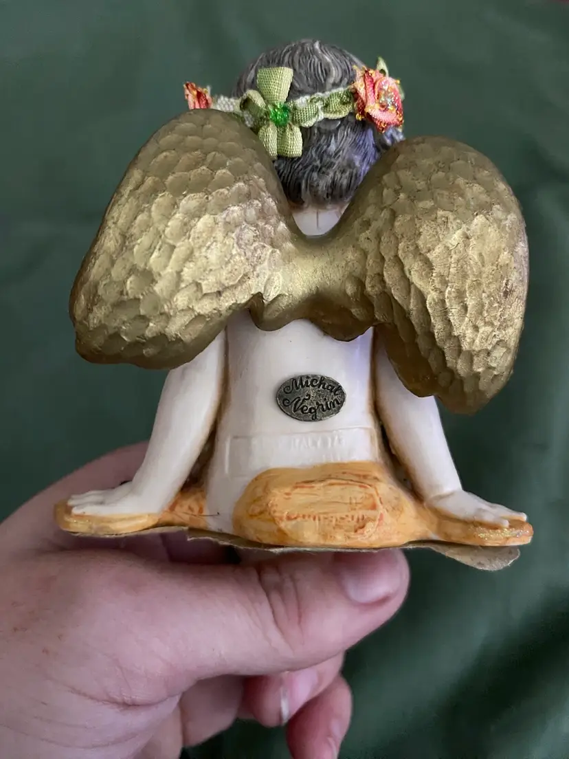 An enchanting little fairy girl hand made by artist Michal Negrim, she’s 5 in tall and the width is 3 1/4 in. She is used, but in very good condition,no chips!