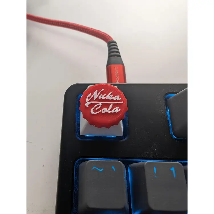 The custom-made Nuka Cola bottle cap keycap inspired by Fallout brings some nuclear level excitement to any typing experience. The cap has an MX stem that fits on any MX switch (including box style switches).