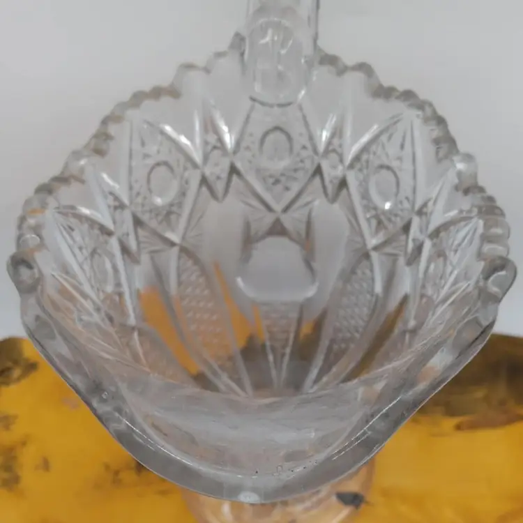 Here's a pretty glass pitcher. It's 8.5 inches tall and the base is 4 1/4 inches in diameter. There are no chips or cracks.