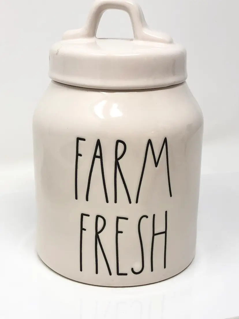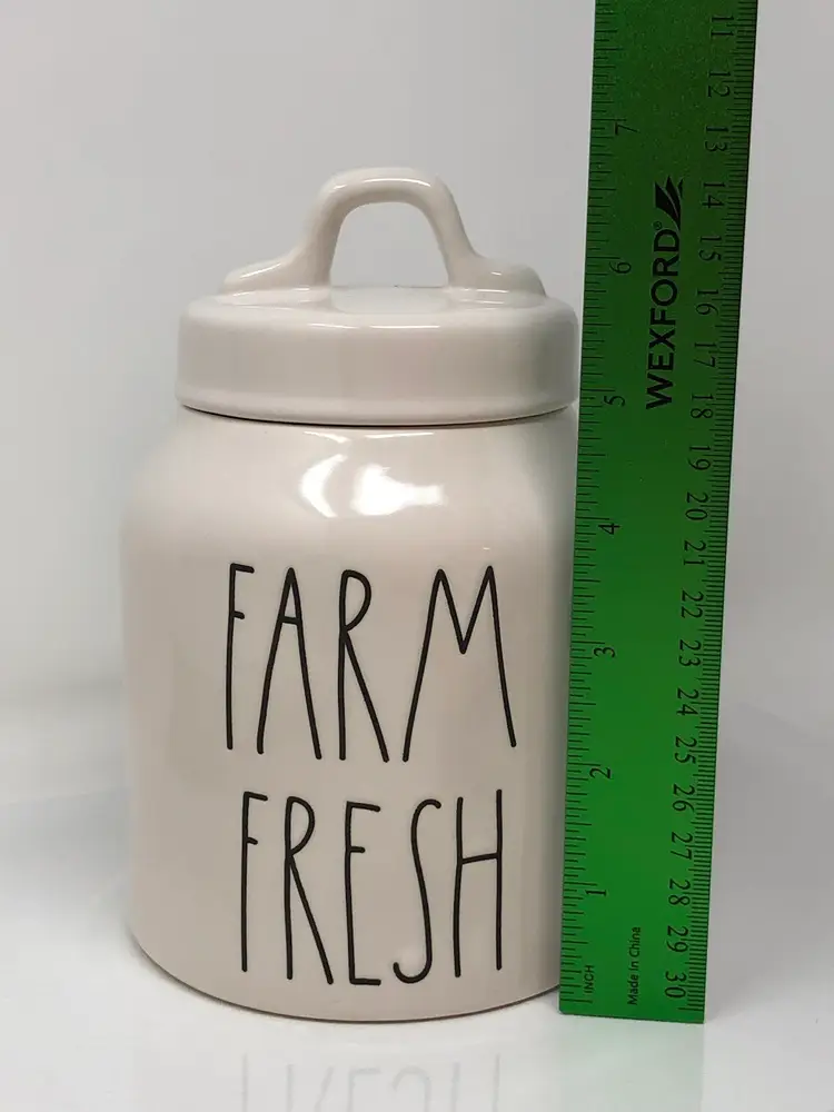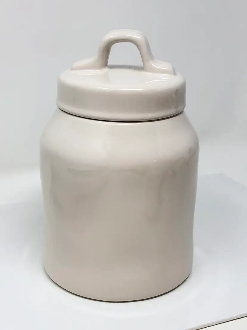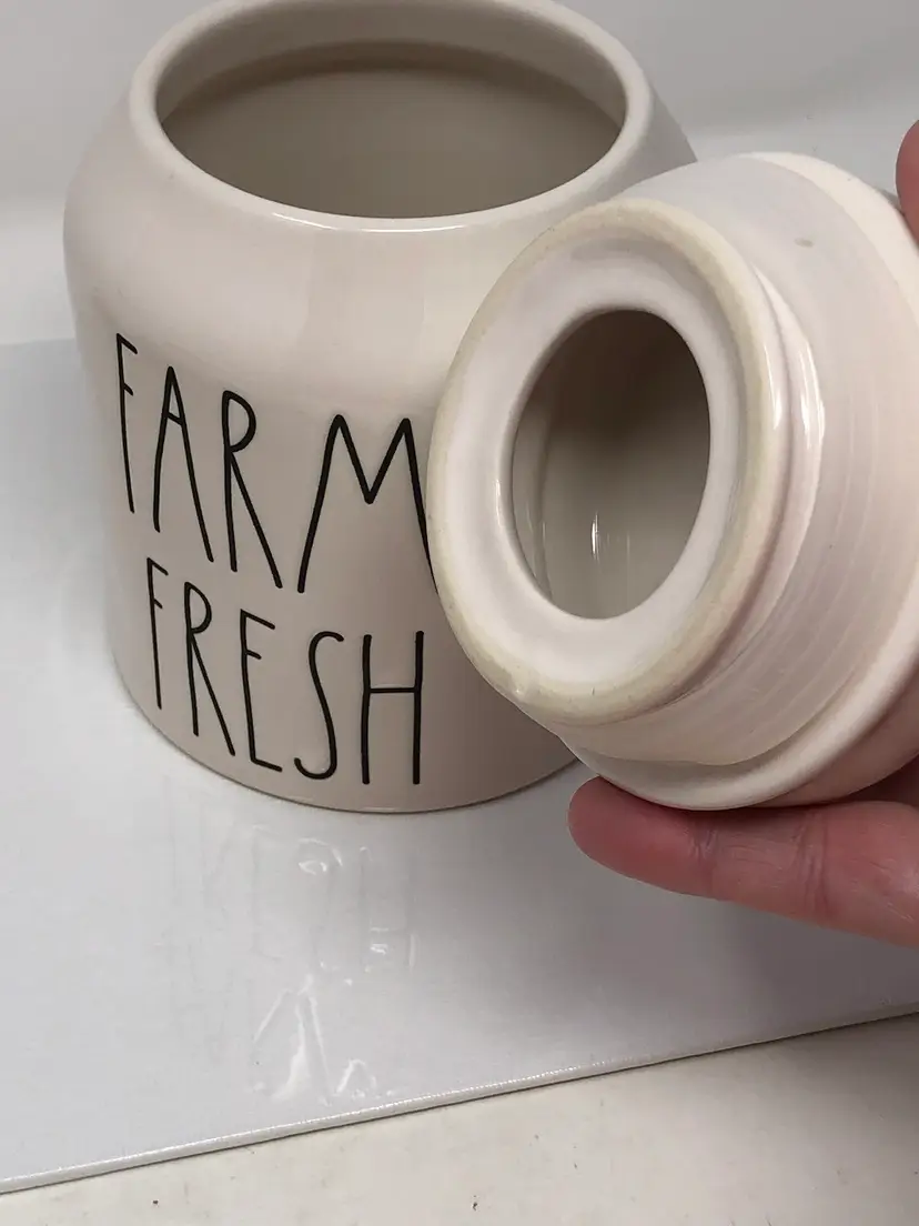 7" ceramic canister Rae Dunn Artisan Collection by Magenta. Lid has a rubber stopper, no chips or cracks.