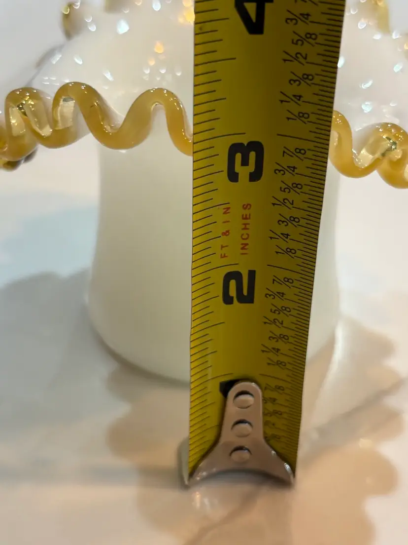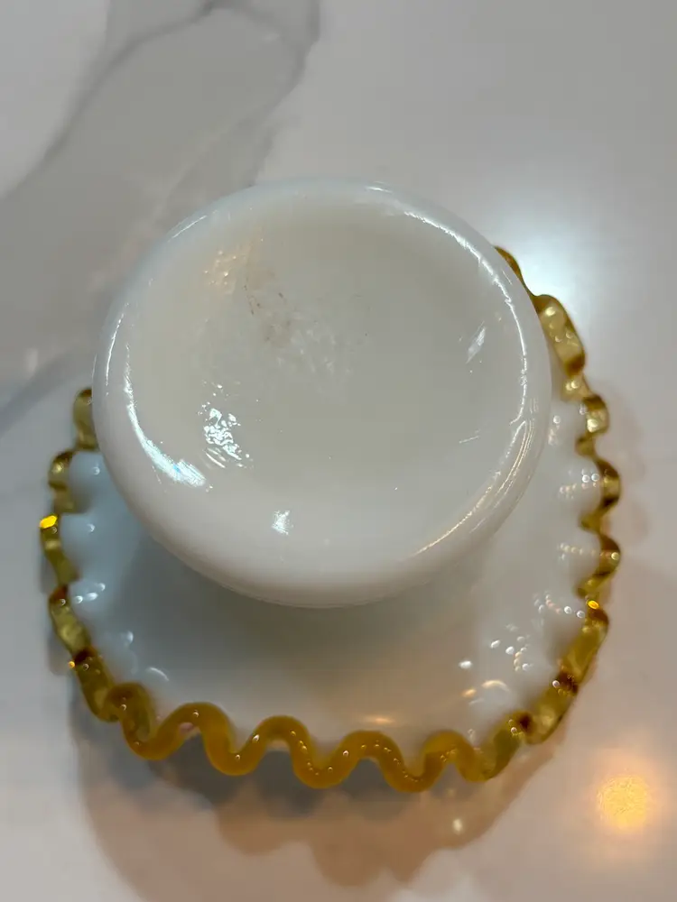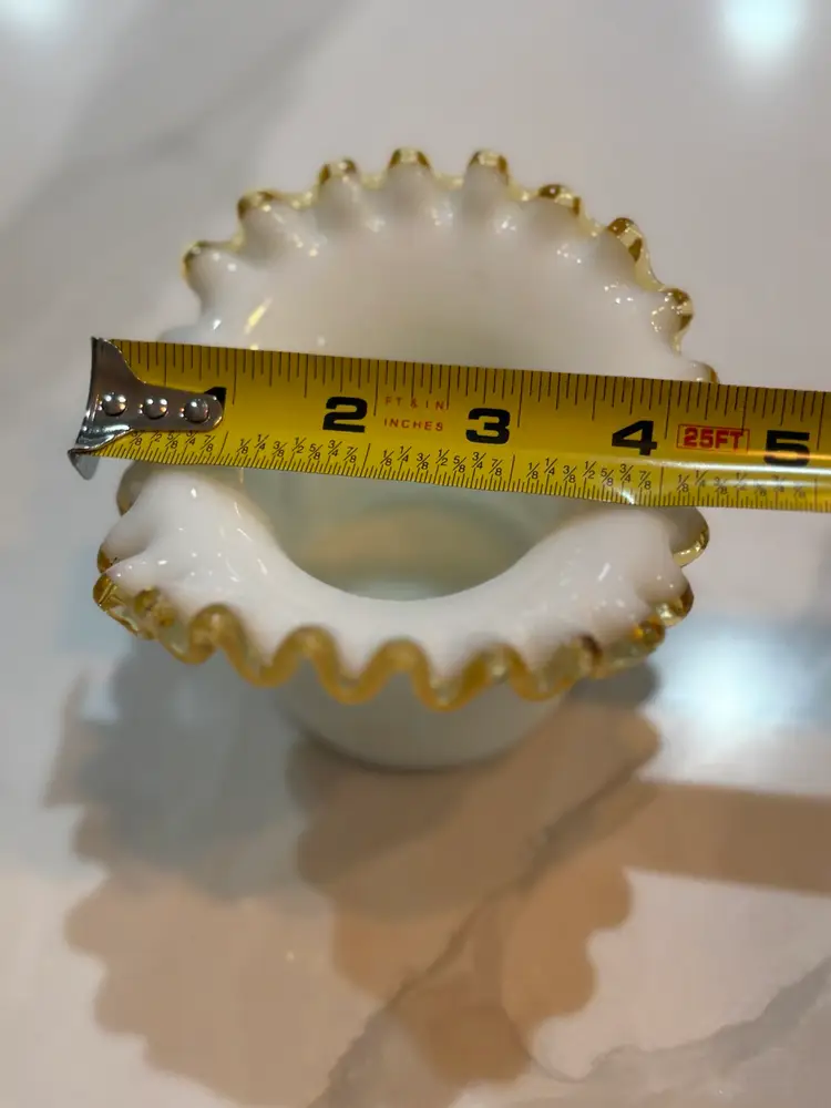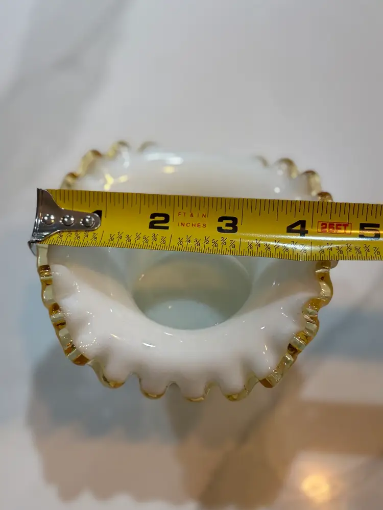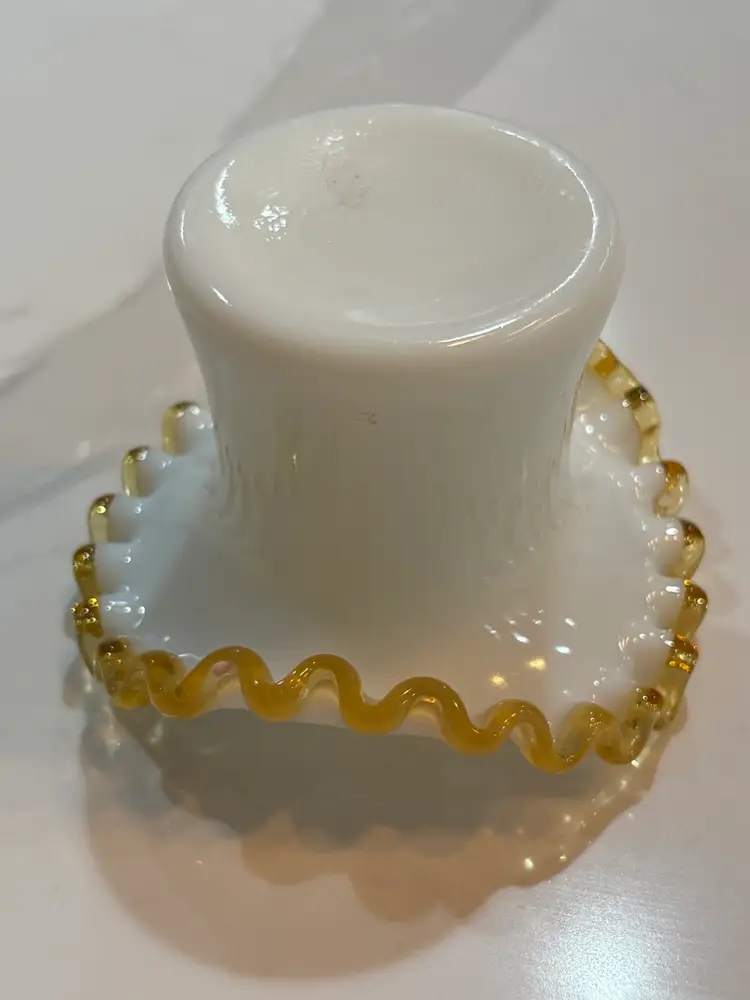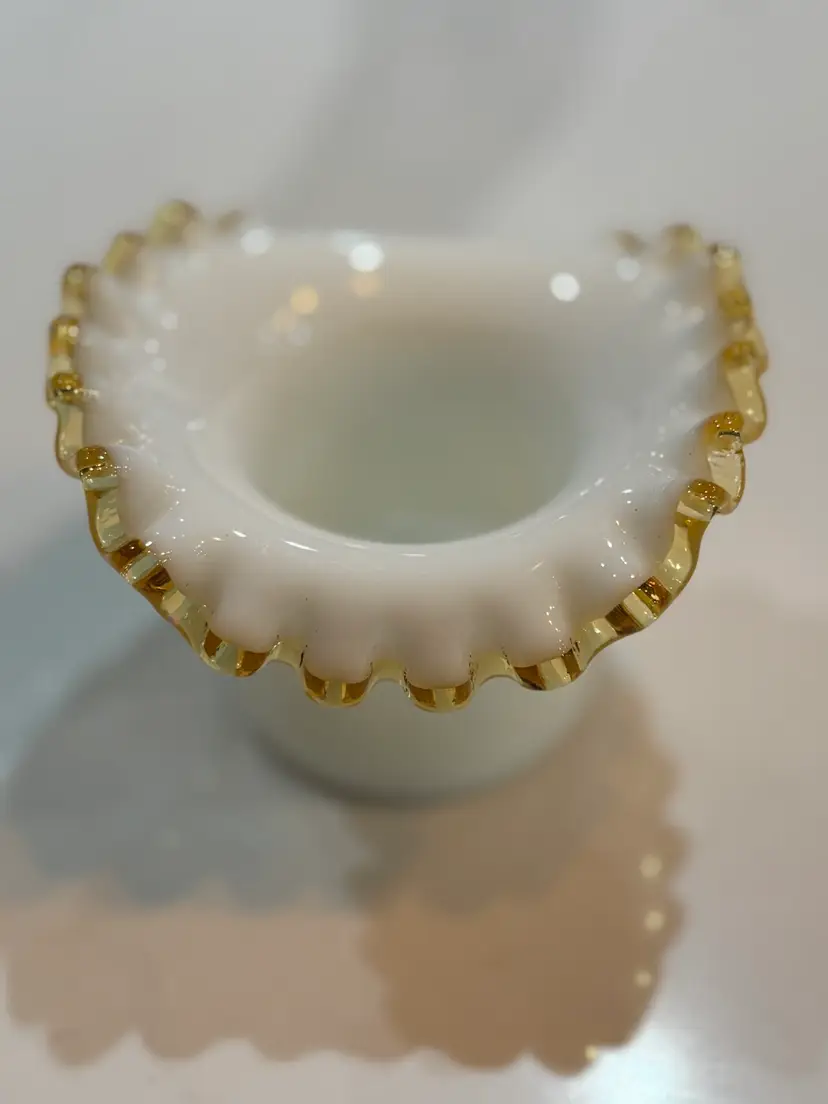 Fenton Amber Gold Crest Milk Glass Hat Shaped Ruffled Vase
