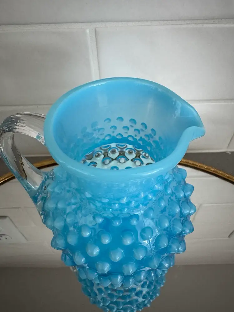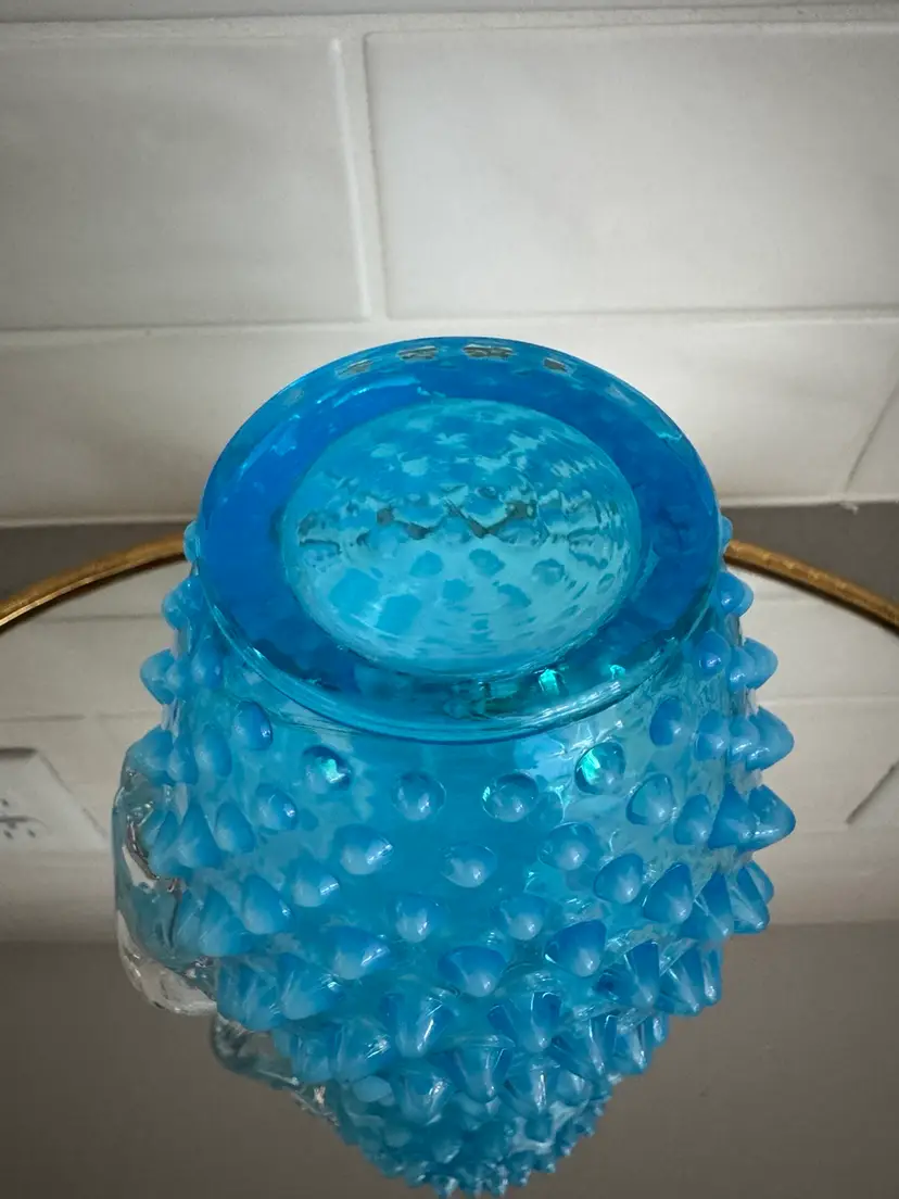 I’m a beautiful decorative piece. There is a straw-like flaw at my base that is watertight and cannot be felt on the outside. Unable to determine if this is a manufacturing flaw or repair. Other than this issue I am perfect and still have a lot of life left in me. I am priced accordingly and will be sold “as is”