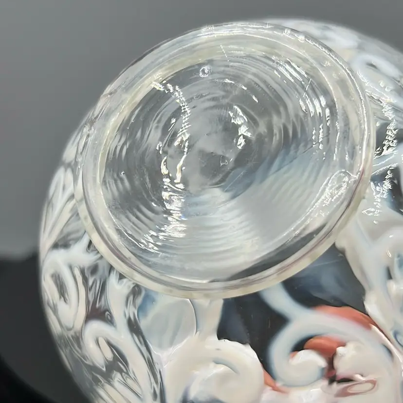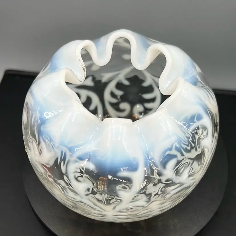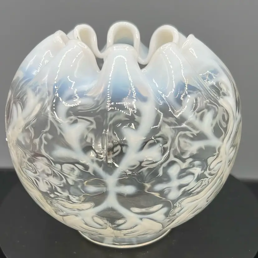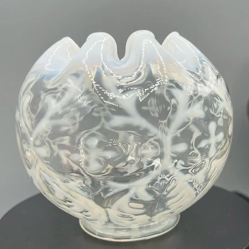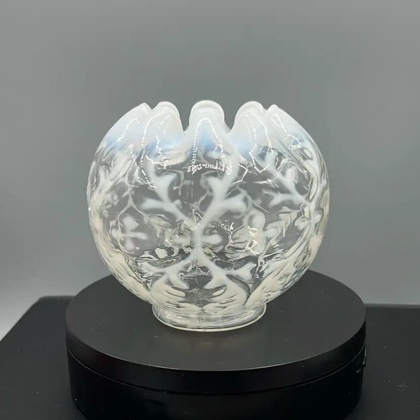 Vintage Fenton White Opalescent Spanish Lace Rose Vase, 4” tall.