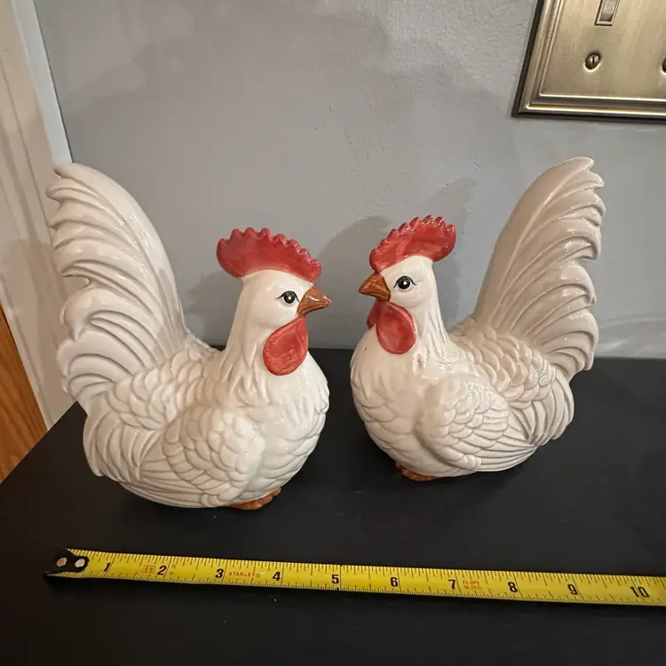 Gorgeous vintage Fitz and Floyd ceramic chicken figurines/ book ends.