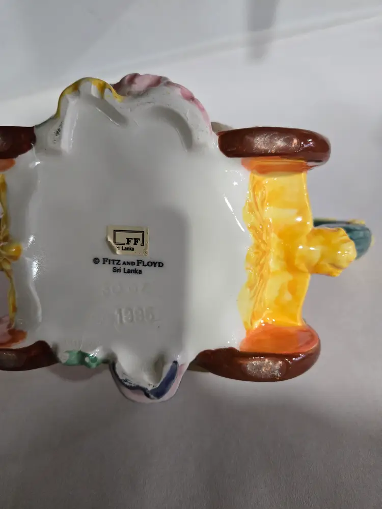 This whimsical Fitz & Floyd teapot captures the enchantment of Cinderella's iconic royal carriage in exquisite detail. Crafted with the brand's signature artistry, this functional piece measures 10 x 8 inches, making it an ideal size for serving tea while doubling as a striking decorative accent. Perfect for collectors and fairy tale enthusiasts alike.