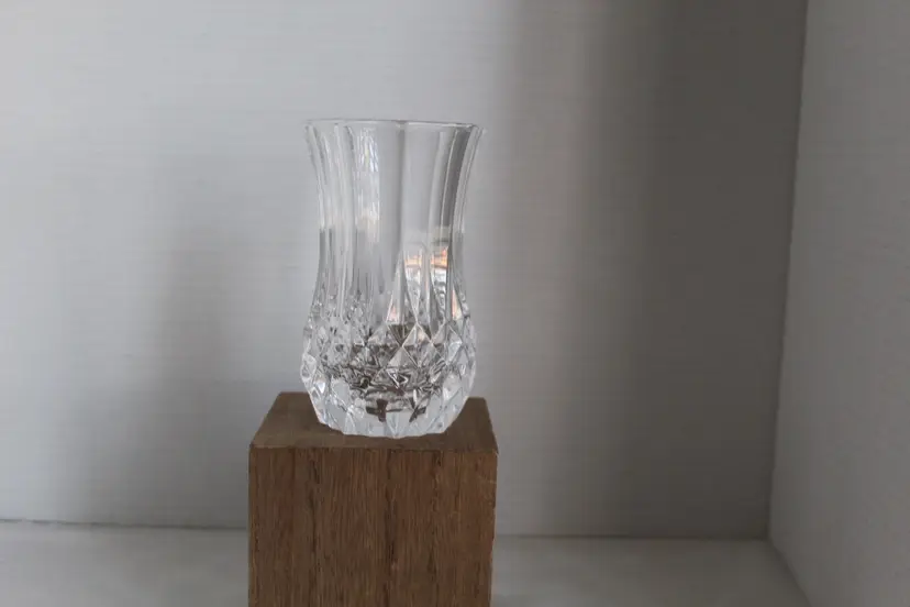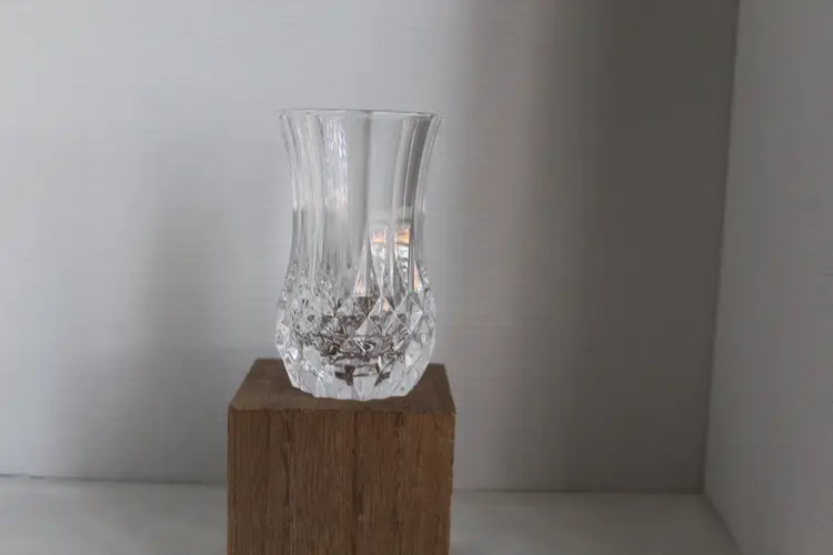 The Flower Vase Clear Longchamp by Cristal D'Arques-Durand France is a vintage piece of decorative glassware from the late 20th century. Standing at 5.10" tall with a glossy finish, this vase features elegant Longchamp patterns and intricate carvings. Made in France by Cristal d'Arque, this original cut glass medium vase exudes a sense of French glass art and sophistication. Perfect for displaying flowers or as a standalone decorative piece, this clear vase adds a touch of vintage flair to any space with its discontinued production and exquisite design.