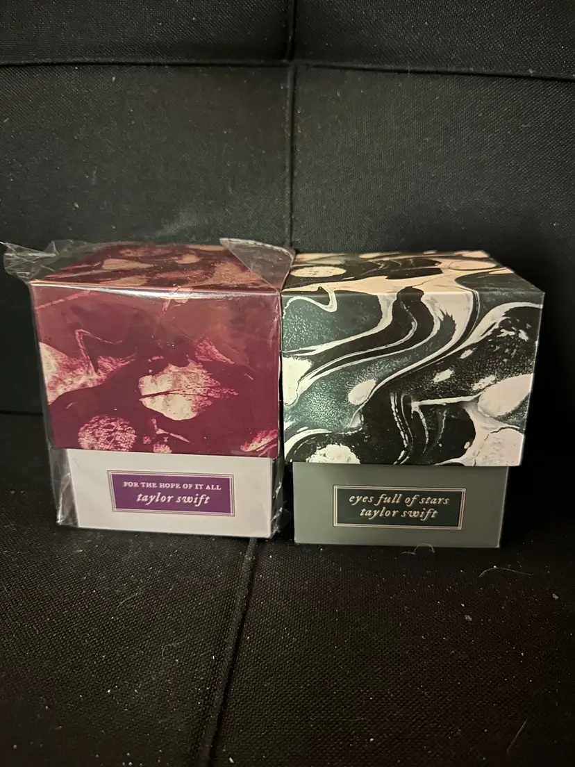 Both folklore candles brand new. For The Hope Of It All candle has never been opened. Eyes Full of Stars candle has been opened but never lit 🙂
