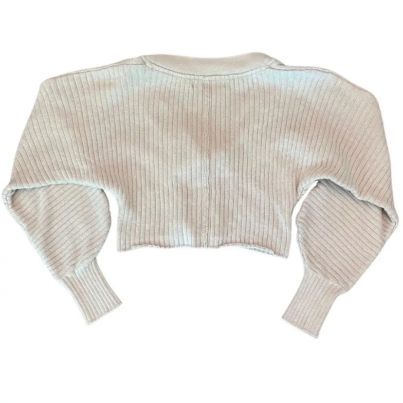 FP Beach Linen Blend Balloon Sleeve Knit Cropped Sweater Size XS 0279P