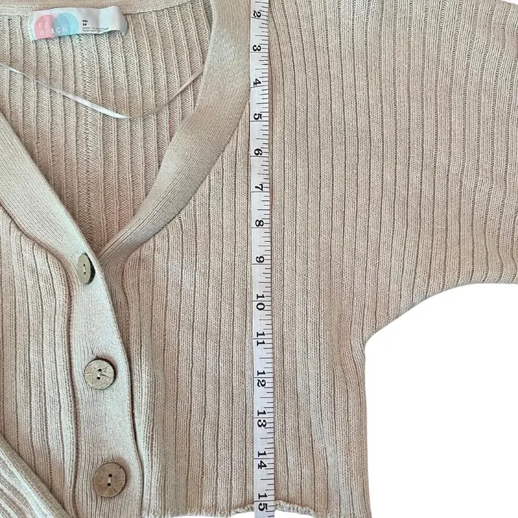 Free People Beach Size XS - oversized fit Color: beige Button closure Crop length Balloon sleeves Ribbed 86% Cotton, 14% Linen