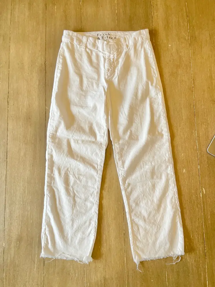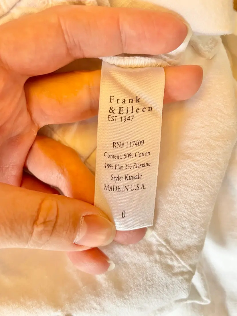 Frank & Eileen White Kinsale Cropped Linen Trouser Pant Size 0 0602S
