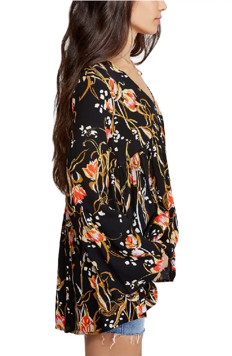 Free People Bella Printed Floral Tunic Top Size XS 0556L
