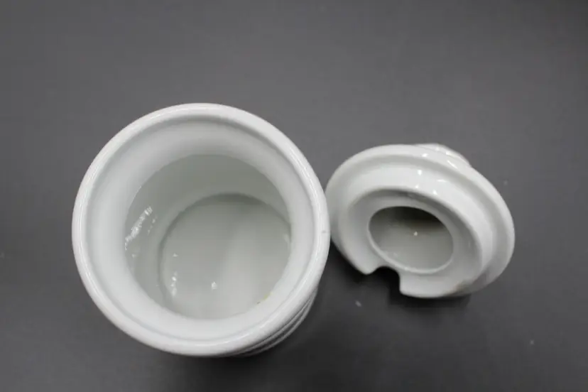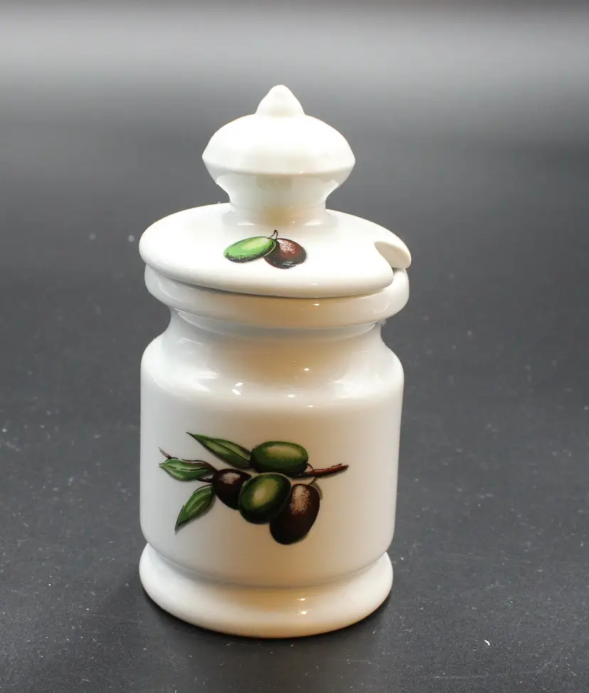 Note that this jar does not have original fork/spoon. Sticker on bottom intact. Excellent condition, no chips or cracks.