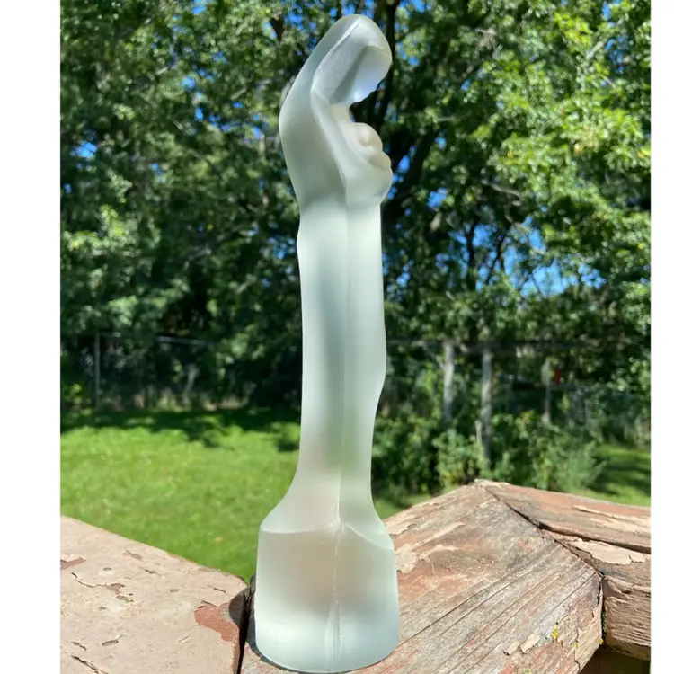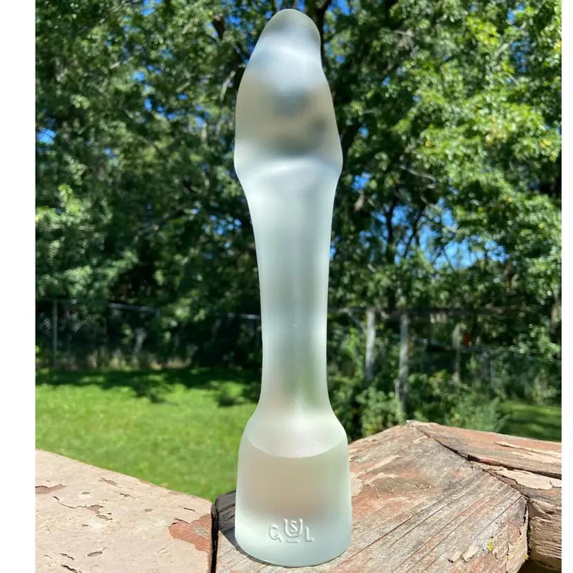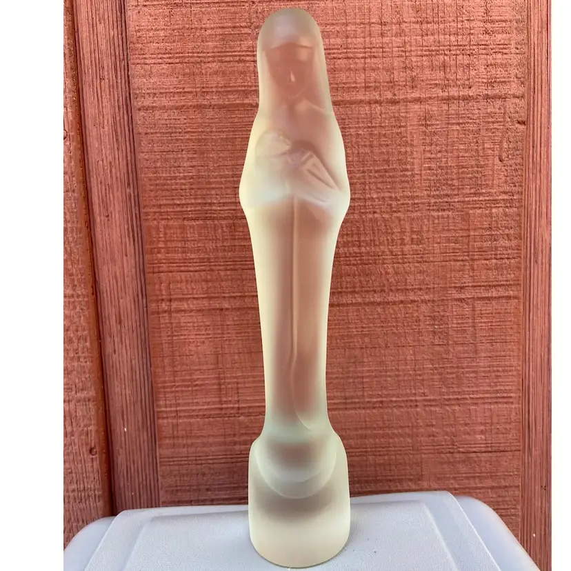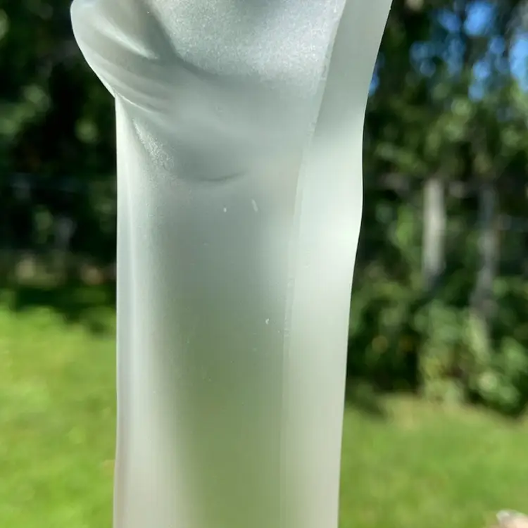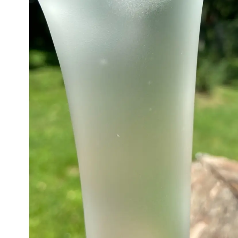 Approx 9.5”h x 2”w. No chips or cracks. See images as part of description. Pictures 9 and 10 show bubbles and imperfection in glass making process. Pictures 11 and 12 show flea bite and scuffs.