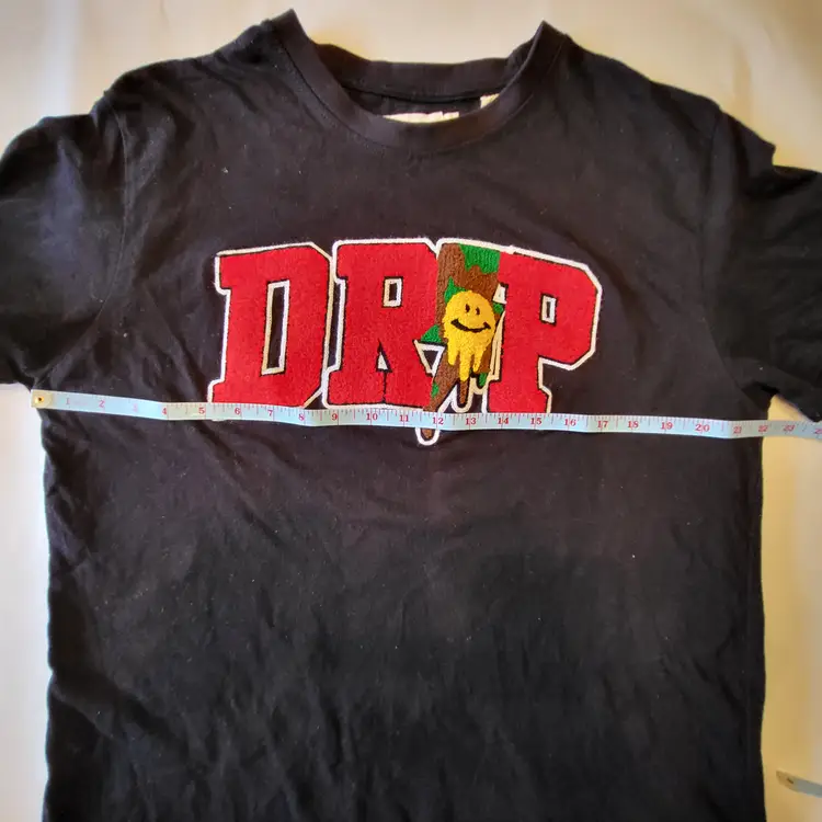 Size: Large Mens Material: 100% Cotton Color: Black Pit to Pit: 22 inches Length: 29 inches Custom Embroidered and Chenille Stitch Work