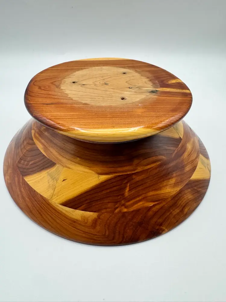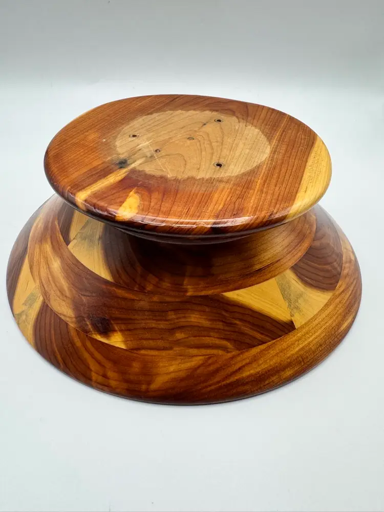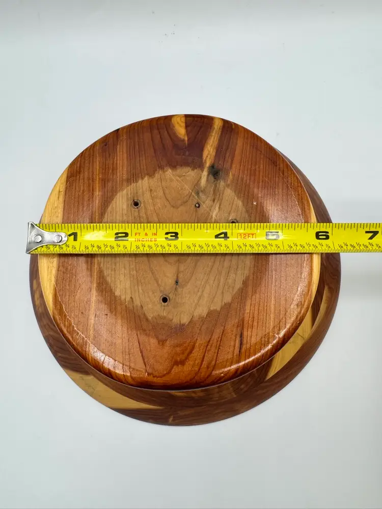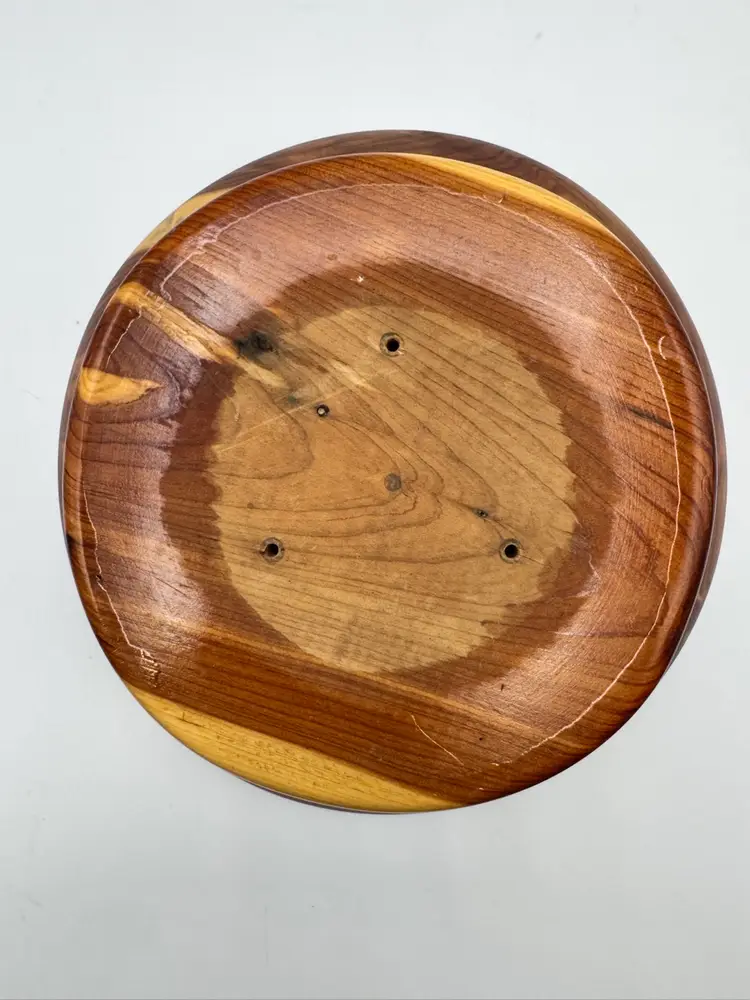Pre-owned in great condition. Light surface scratches and finish swirls. Underside shows holes where the bowl was place to shave off wood to create the bowl. Please see all pictures as they are part of the description.