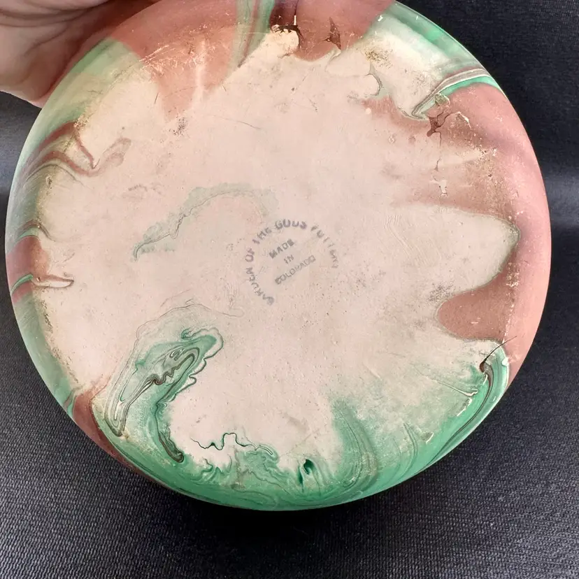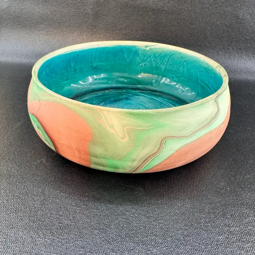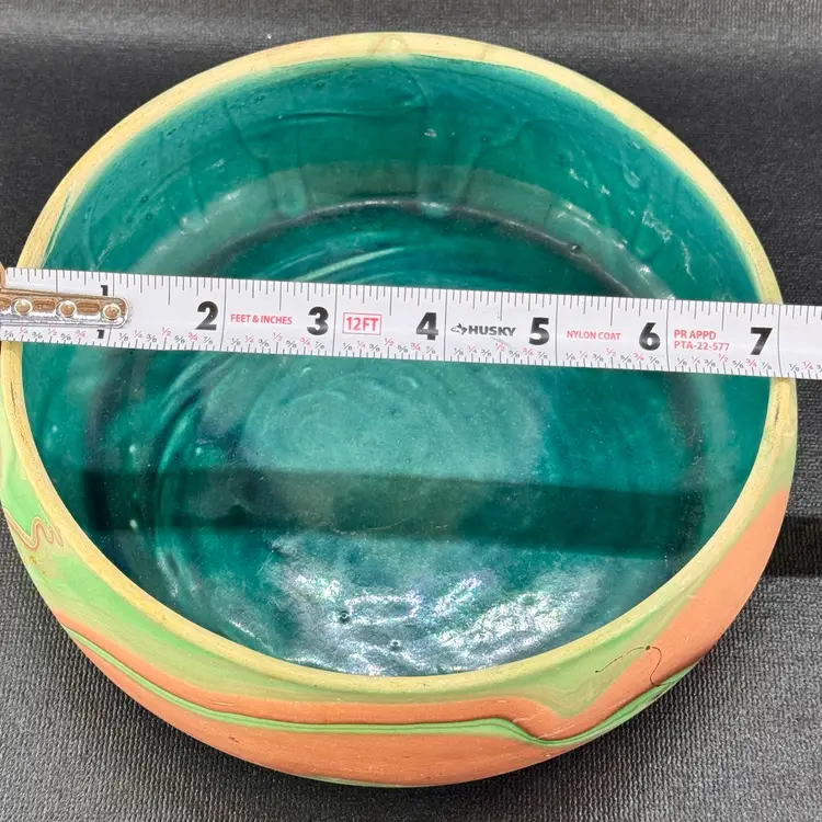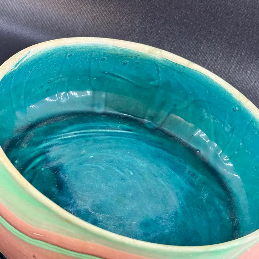 Garden of the Gods Handmade Pottery Bowl 7” Swirled Design Bright Teal Glaze Colorado Springs