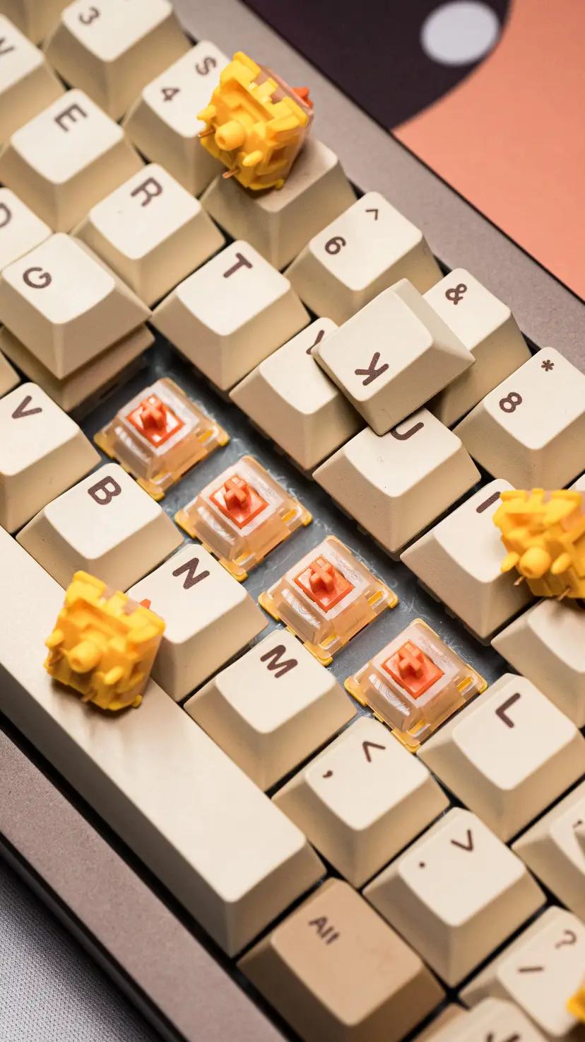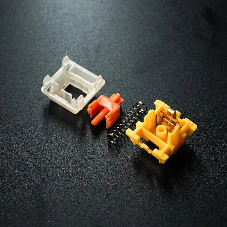The Gateron EF Curry linear switches are budget-friendly linear switches that are pre lubed from the factory. They have a relatively low volume compared to other linear switches.