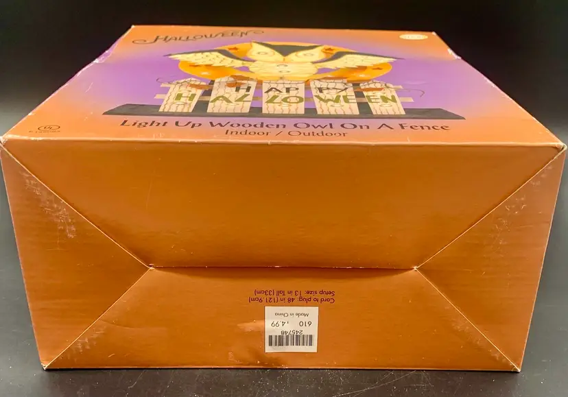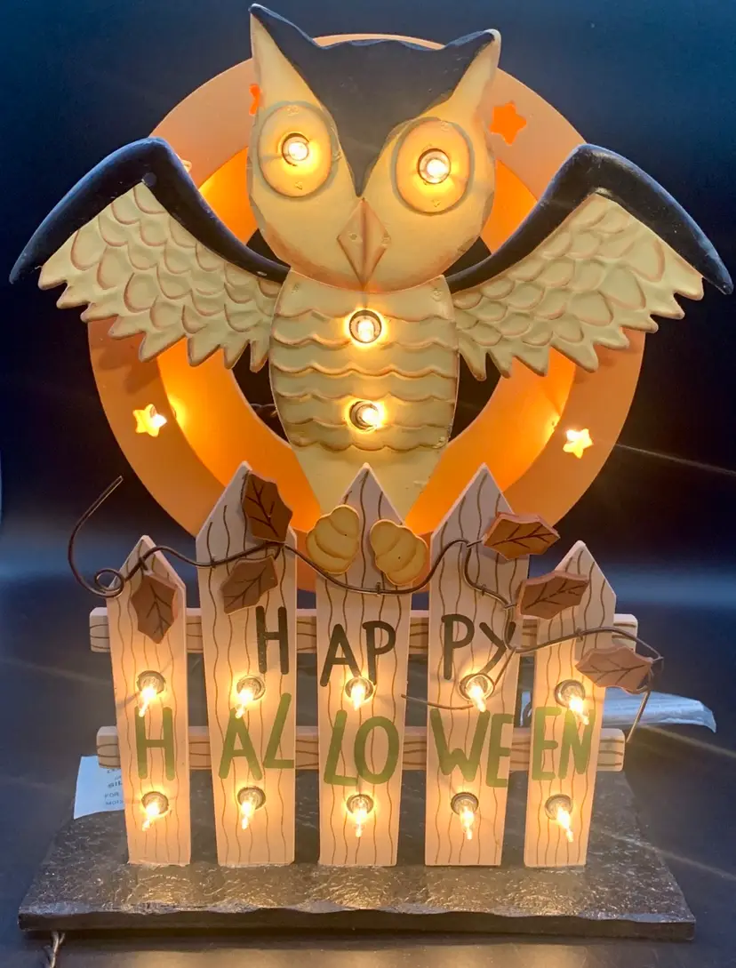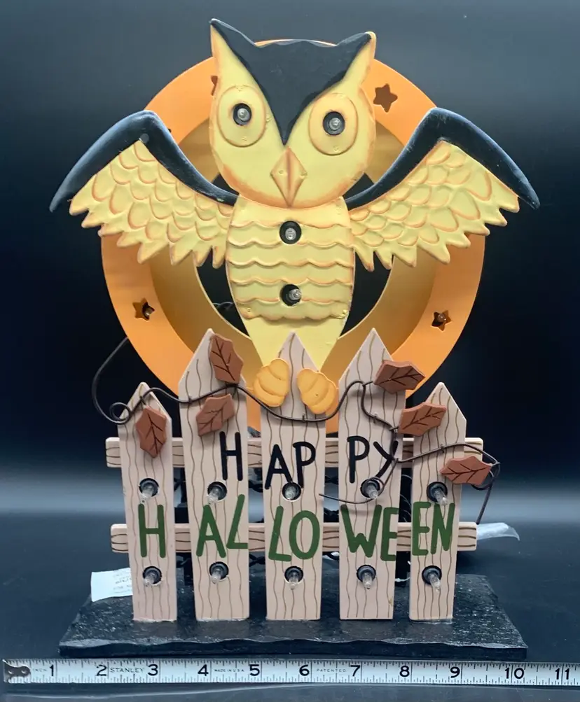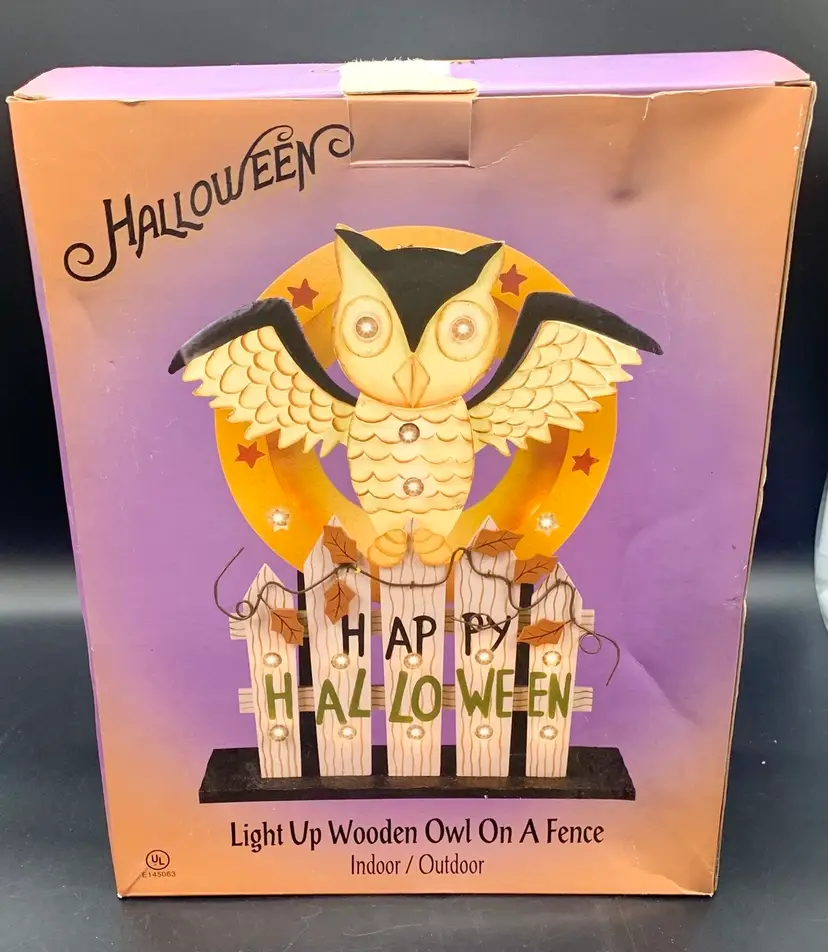 The medium-sized figurine is perfect for adding a touch of Halloween to your home decor. The brand, Gemmy, is known for its high-quality holiday decorations, and this piece is no exception. Celebrate the occasion with this charming Halloween Light Up Wooden Owl On A Fence figurine. Tested complete with box.