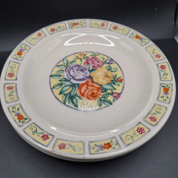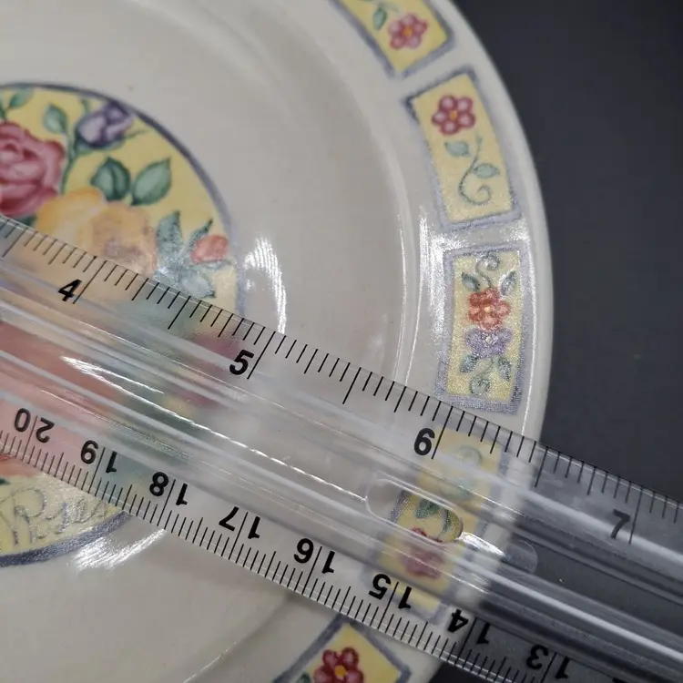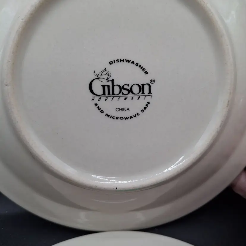 These Gibson Housewares ceramic plates feature a charming floral rose pattern, adding elegance to any dining setting. Their durability ensures long-lasting use.