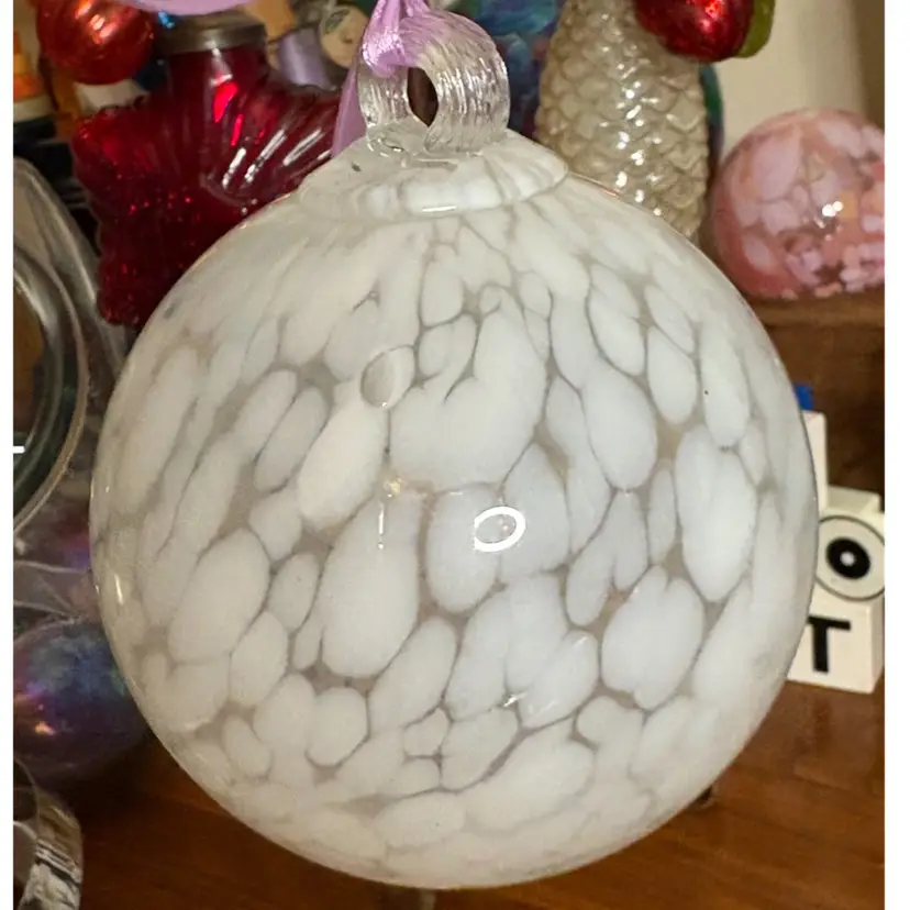 Snow orb All white covering this gorgeous glass orb/ornament