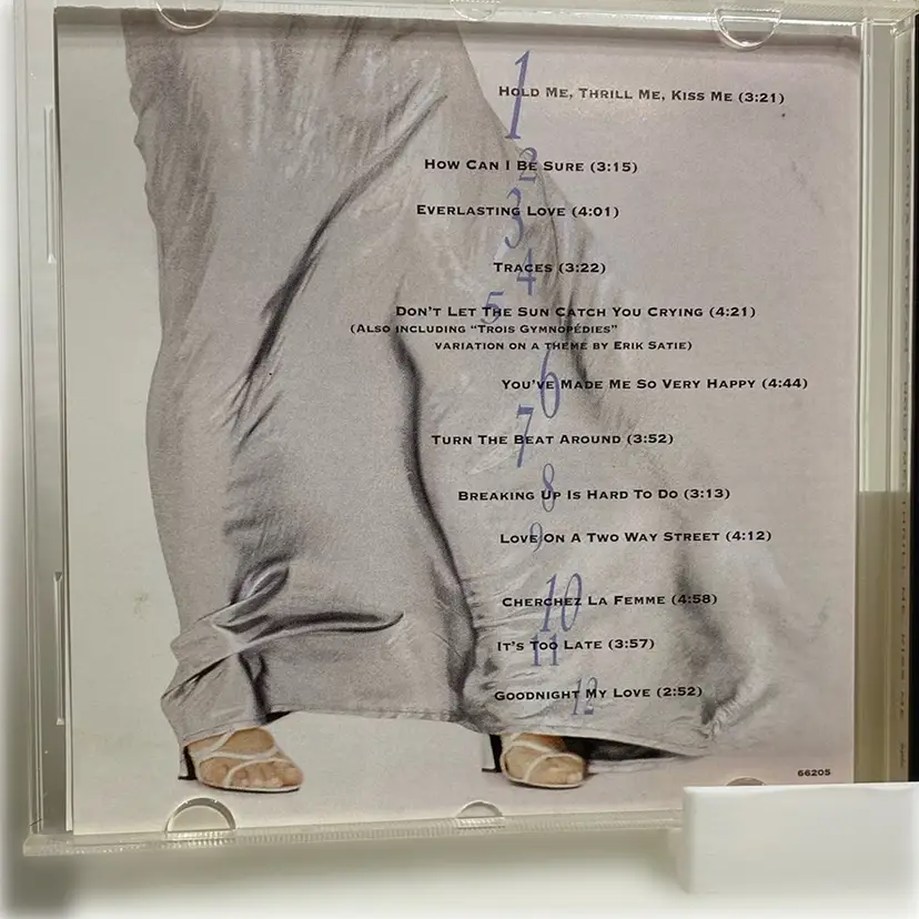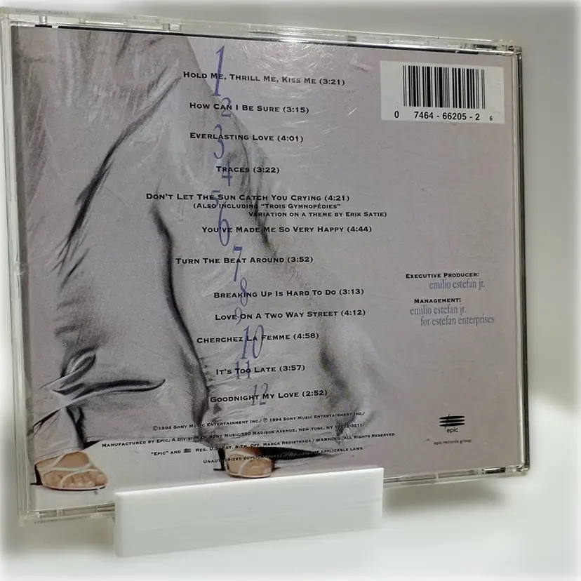 Release and Type: This is Gloria Estefan's fifth solo studio album and her first covers album, released in October 1994 by Epic Records. Content: The album includes cover versions of classic songs from the 1950s, 60s, and 70s by various artists, like "Turn the Beat Around" (originally by Vicki Sue Robinson) and "Everlasting Love" (originally by Robert Knight). Genre: The album is primarily Dance Pop and Latin Pop. Performance: "Hold Me, Thrill Me, Kiss Me" reached number nine on the US Billboard 200 chart and sold over 2 million copies in the United States