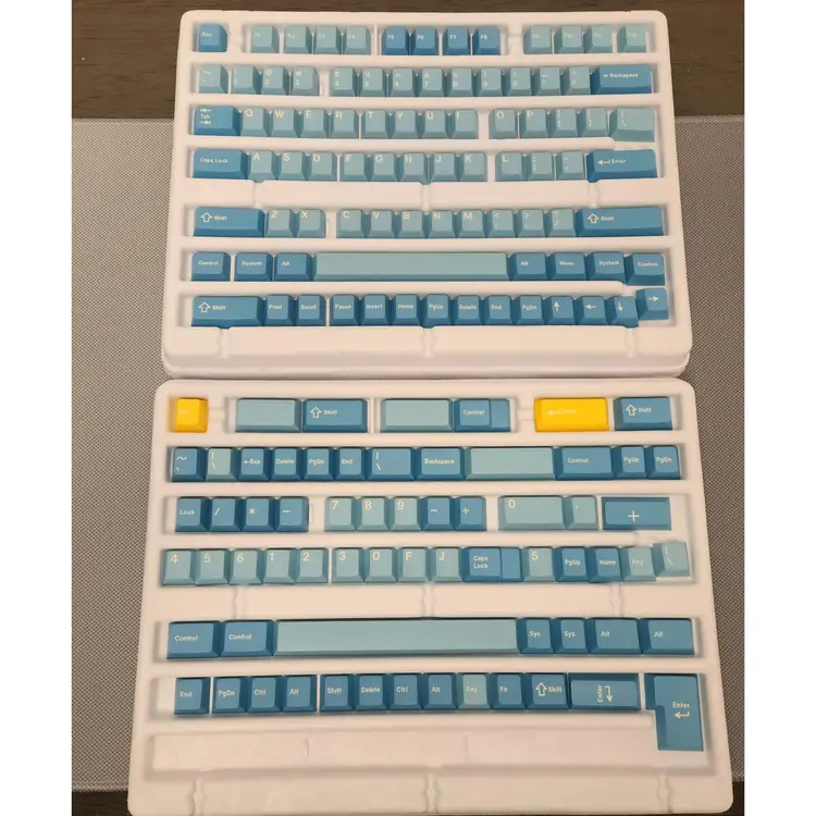 This is the GMK Belafonte Base kit. I have only used it once on a keyboard and then took it off when I decided that it would not fit the theme of the board.