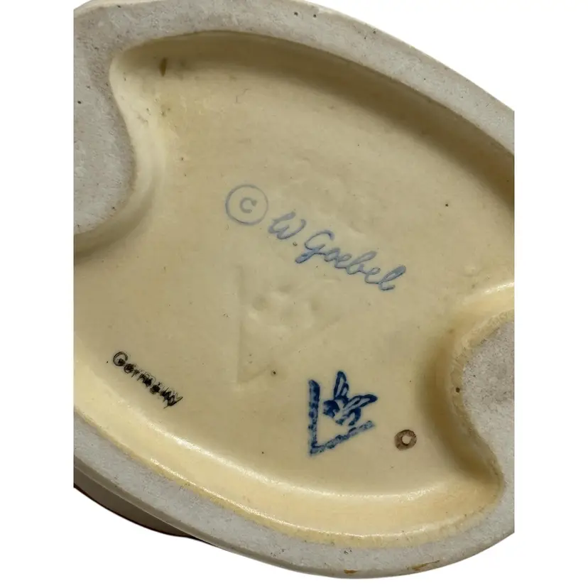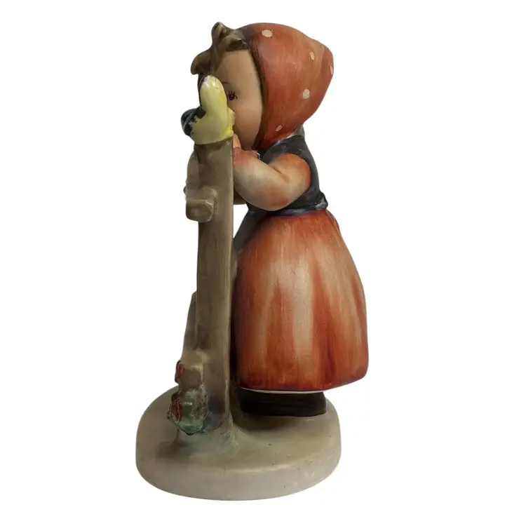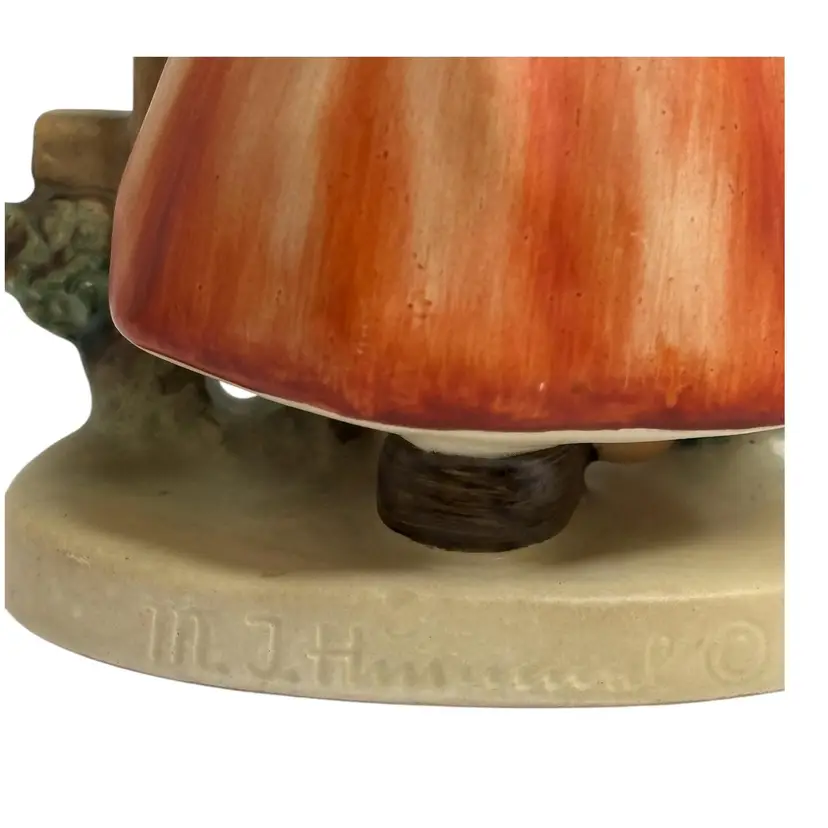 This is a Goebel Hummel Germany Figurine, Signs of Spring. It measures approximately 3 1/2" L x 2 3/4" W x 5" H. I am in no way an expert on Hummels but the marking on the bottom indicates that this is from the 1950s. There was a paper sticker on the bottom of the piece that has fallen off. It can be seen in the photos. In the corner of the sticker, it says 1951. It is in wonderful condition with no chips or cracks. Please see photos and feel free to contact me with any questions. Thank you.