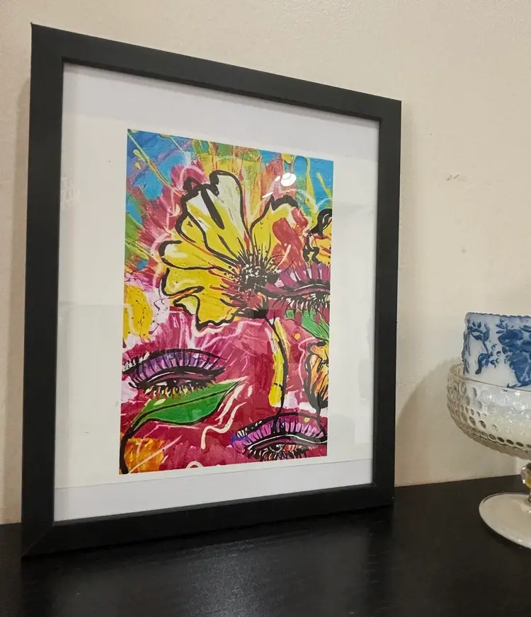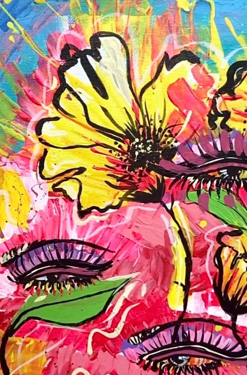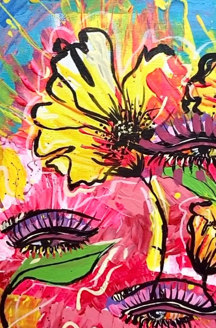 Going Flower: Eyes of Protection is a bold and intuitive mixed media piece that merges movement with mysticism. Layers of vibrant florals bloom alongside protective eyes—symbols of awareness, spiritual vision, and unseen guidance. Painted with acrylic and watercolor, the textures and fluidity evoke growth, strength, and inner power in full bloom.