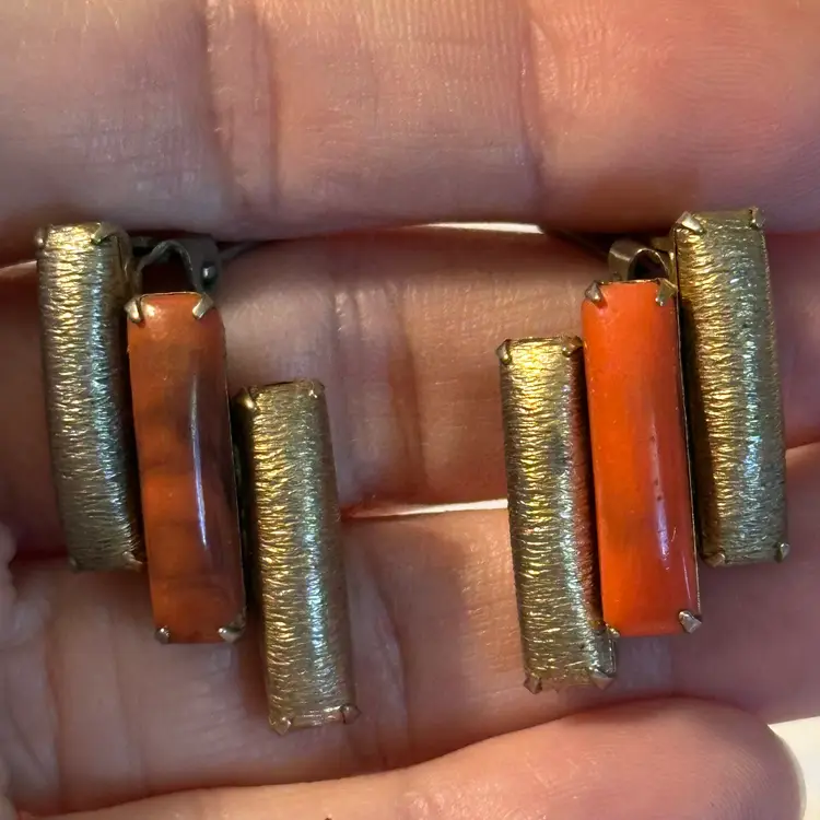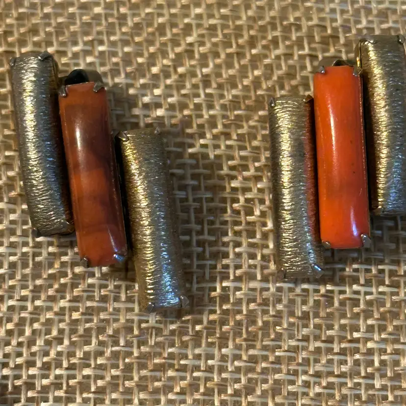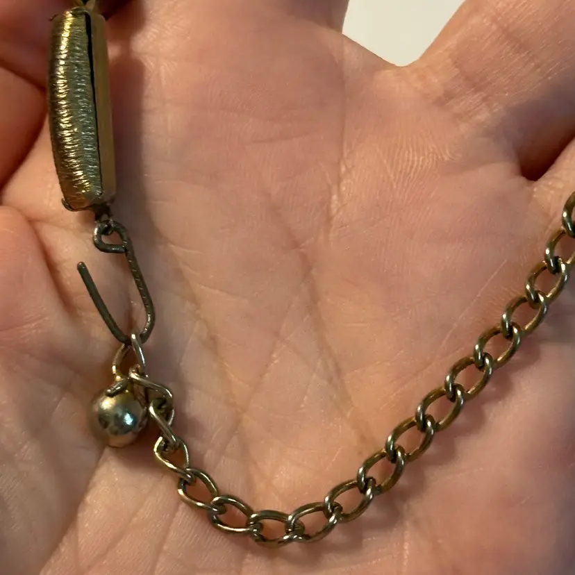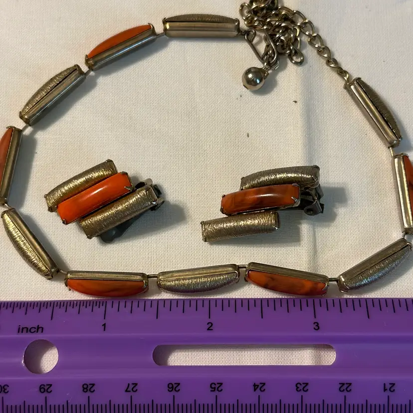 This fun set does show some metal wear. Good for casual wear or upcycle. 15”