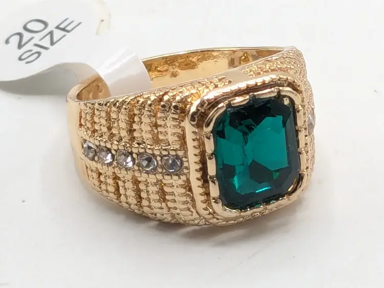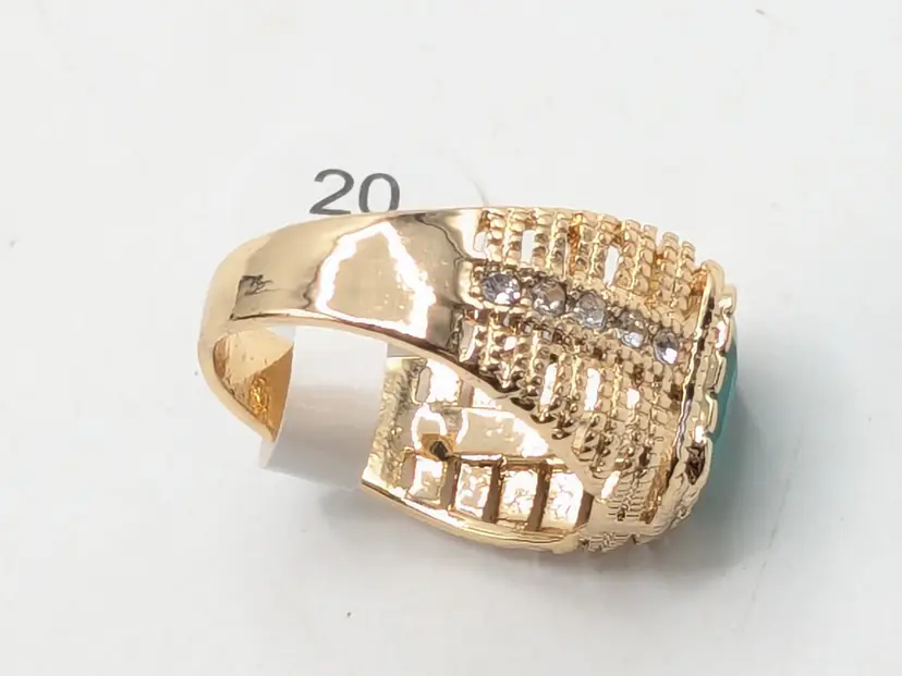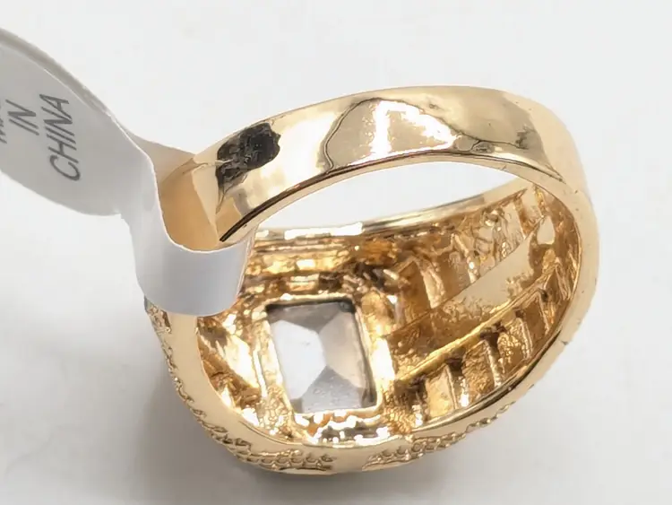 Good condition. New old stock. Gold tone is bright and shiny with no color loss. Rhinestones are all present and sparkly. Men or women's. Size 9 3/4" U.S. EN3