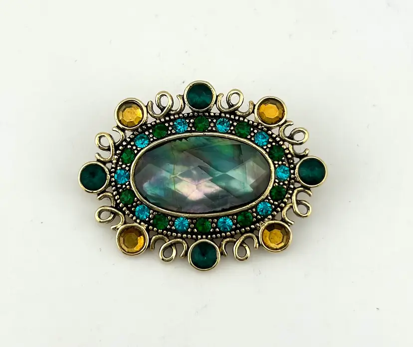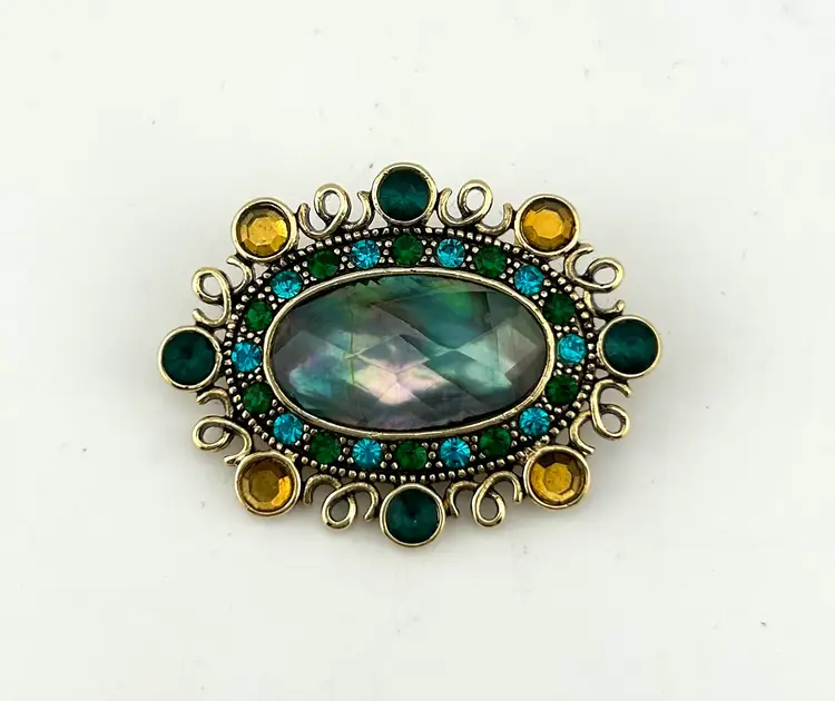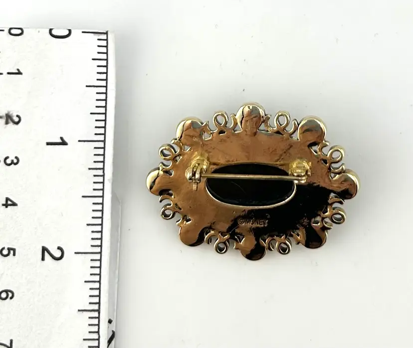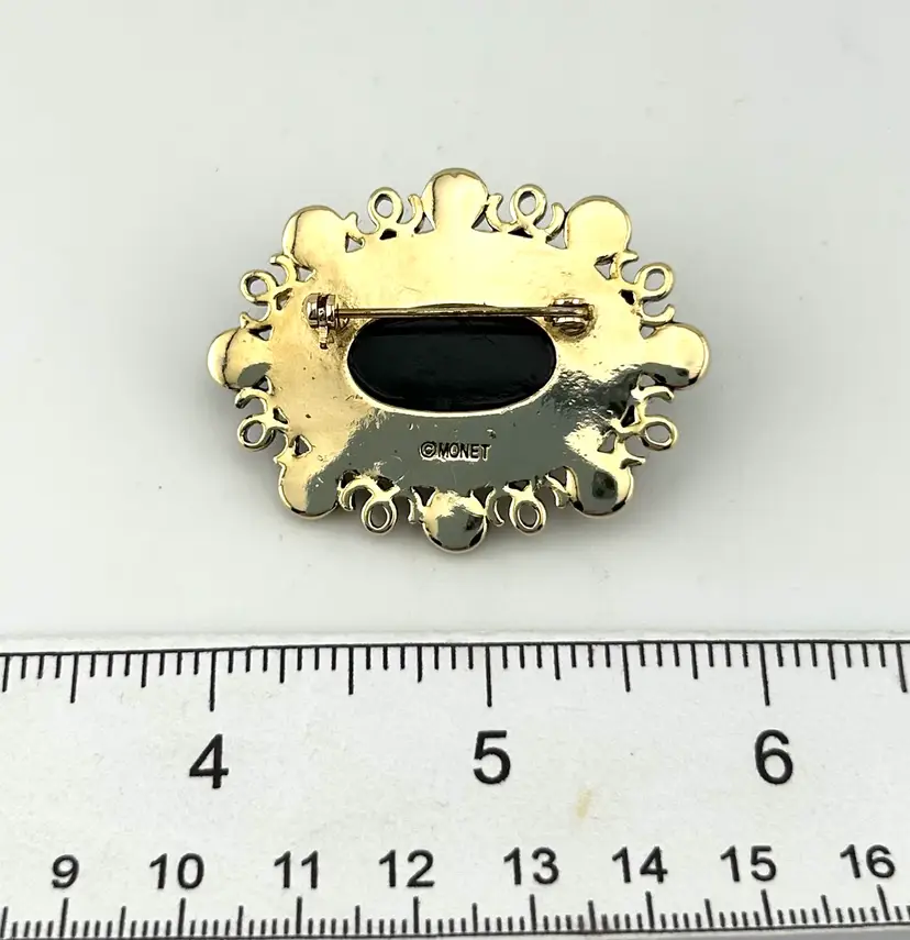 Gold Tone Vintage Monet Faux Gemstone Brooch 2”x 1.5”