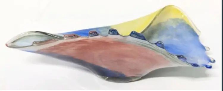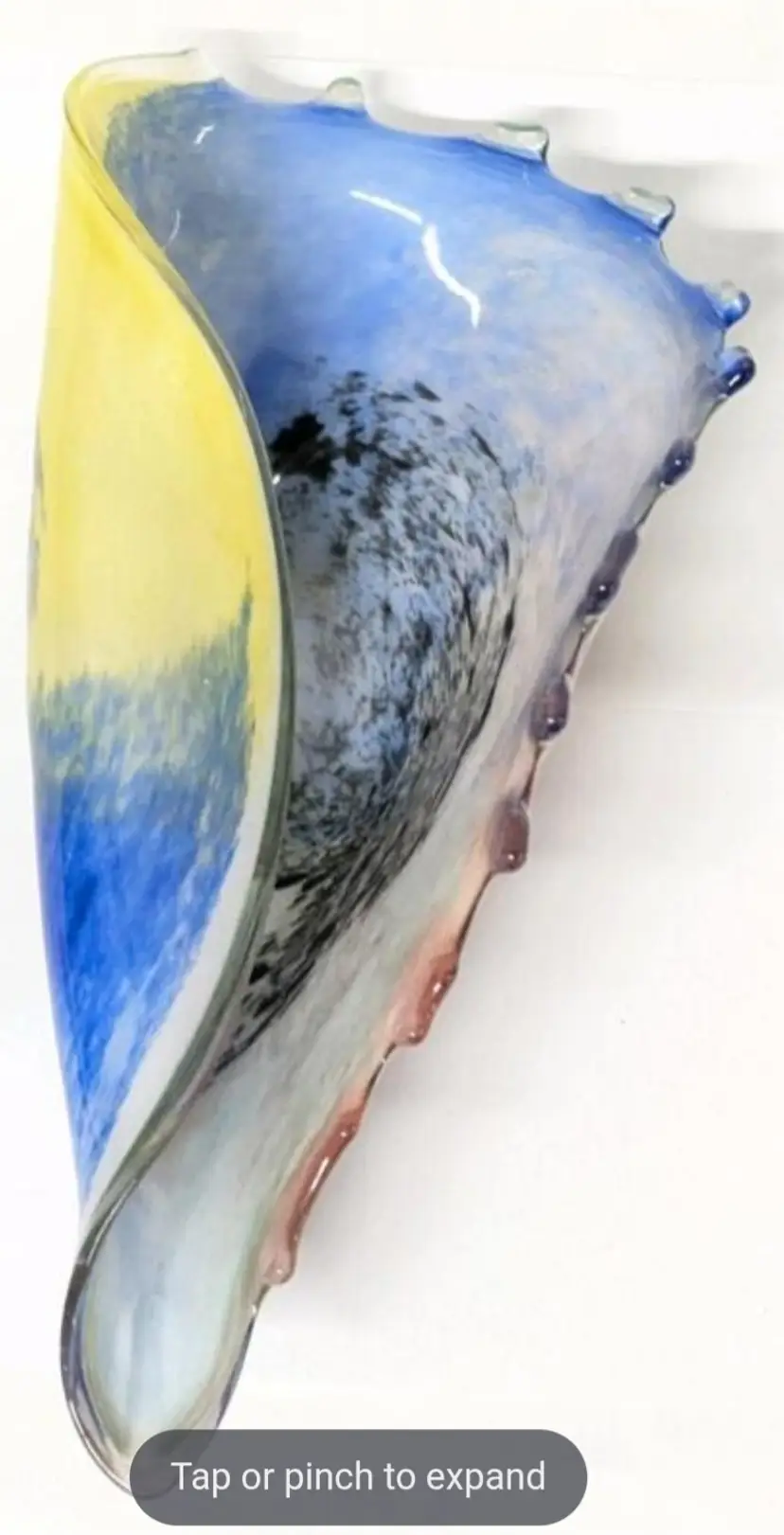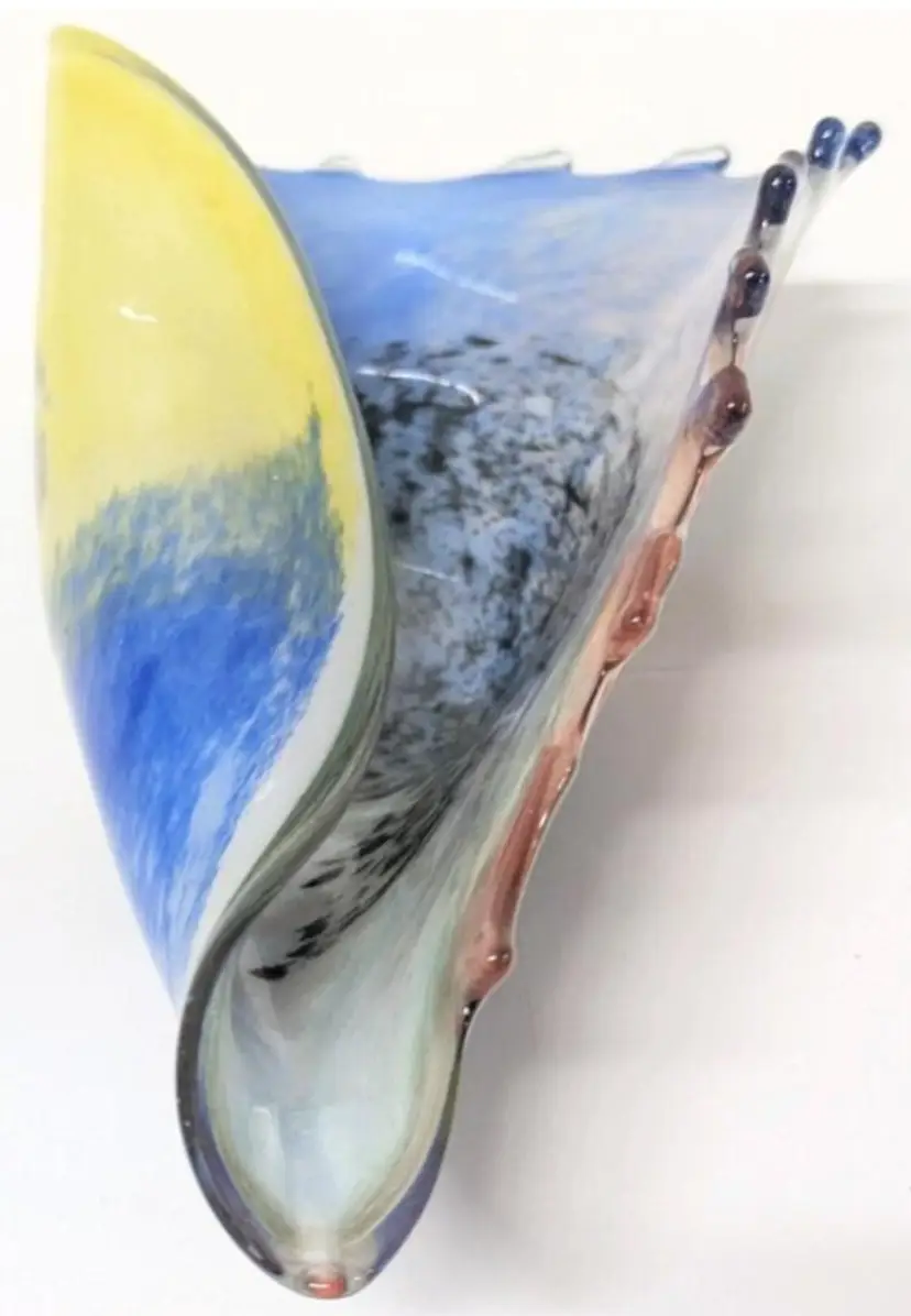Gorgeous Unsigned Jozefina Poland Art Glass Wave Shell, 9.2" Long