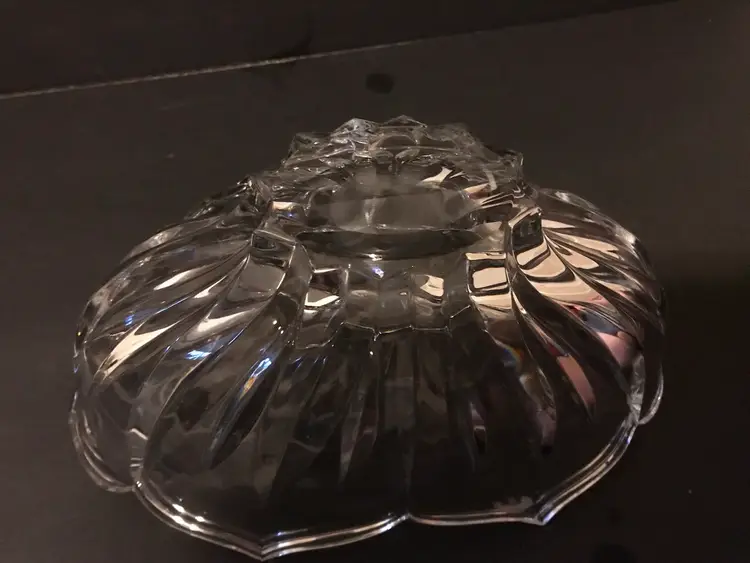 The Gorham cut crystal 10-inch bowl in the Lotus pattern is a stunning piece with a tulip shape and a lotus pattern design, perfect for all occasions. Made in Germany, this vintage piece features a glossy finish and is crafted from high-quality crystal. The bowl is beautifully decorated and showcases intricate details, making it a unique and elegant addition to any home decor. With a weight of 3.8 lbs, this bowl requires hand wash only and is a true statement piece for adult collectors. No chips or cracks