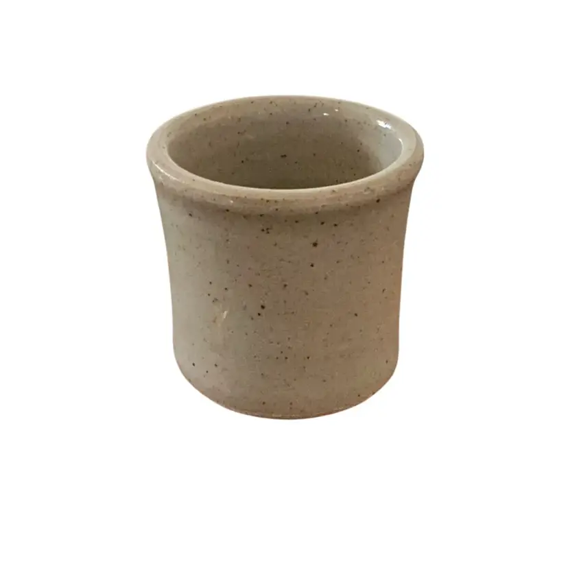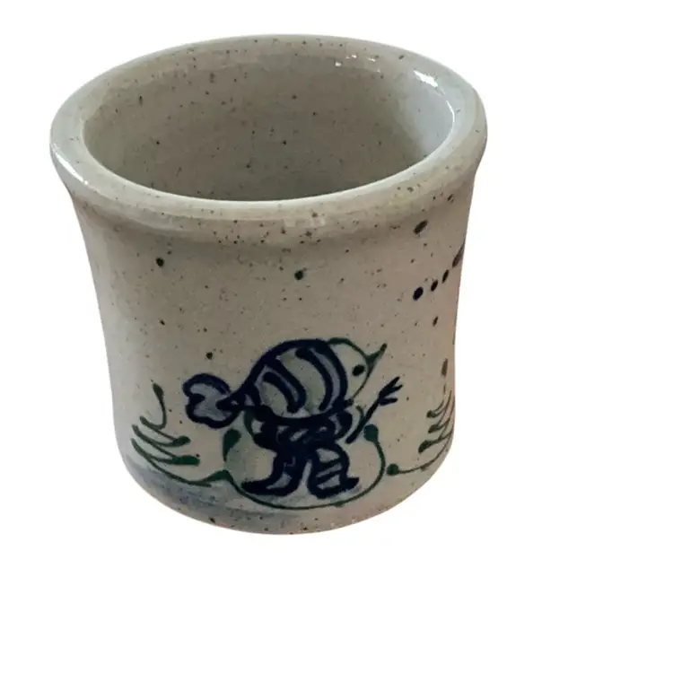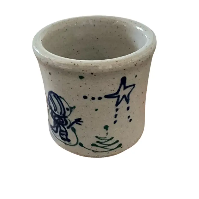 Cute salt glaze mini crock to hold your votive or tea light candle. Could also be used for toothpick holder. 2 1/2” x 2 1/2.”