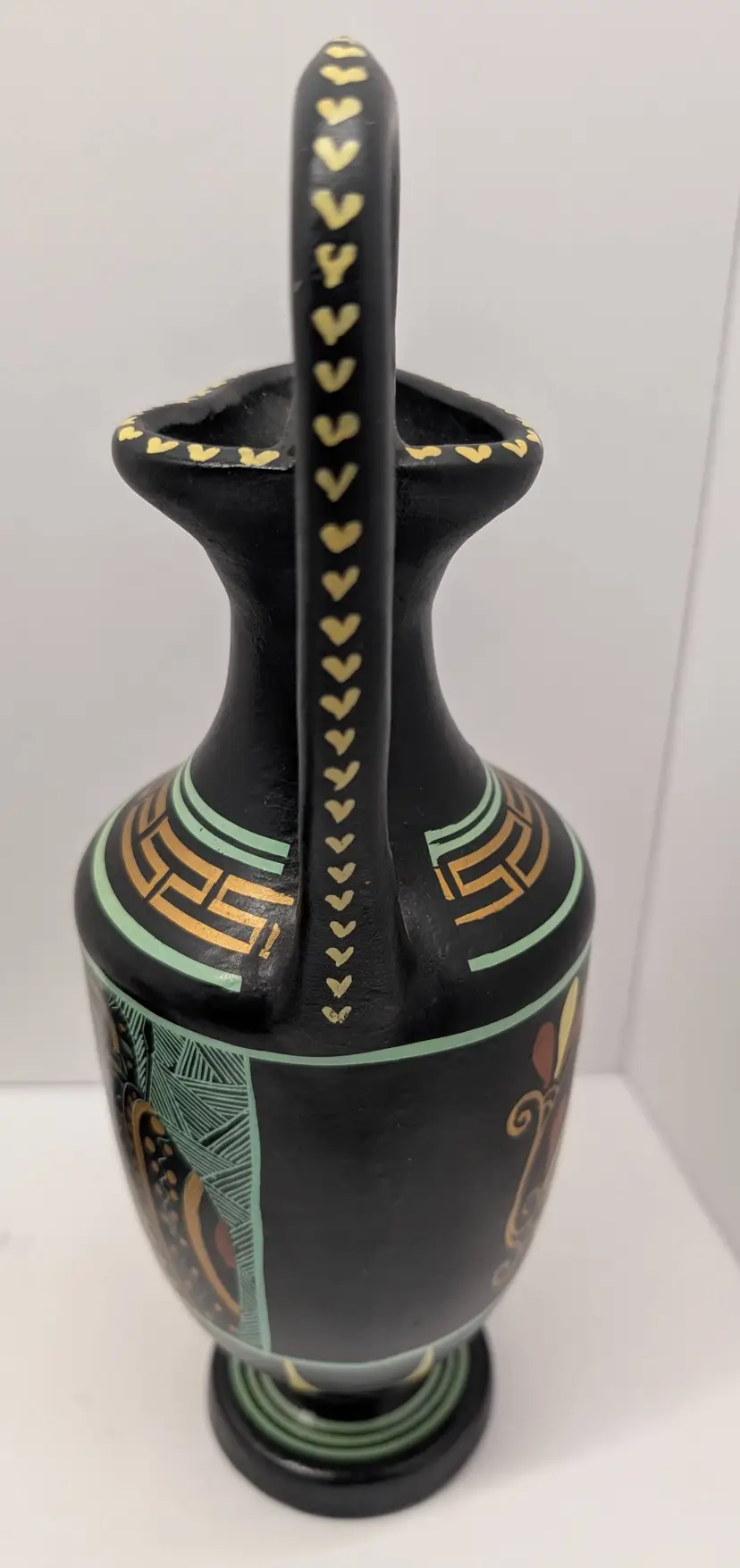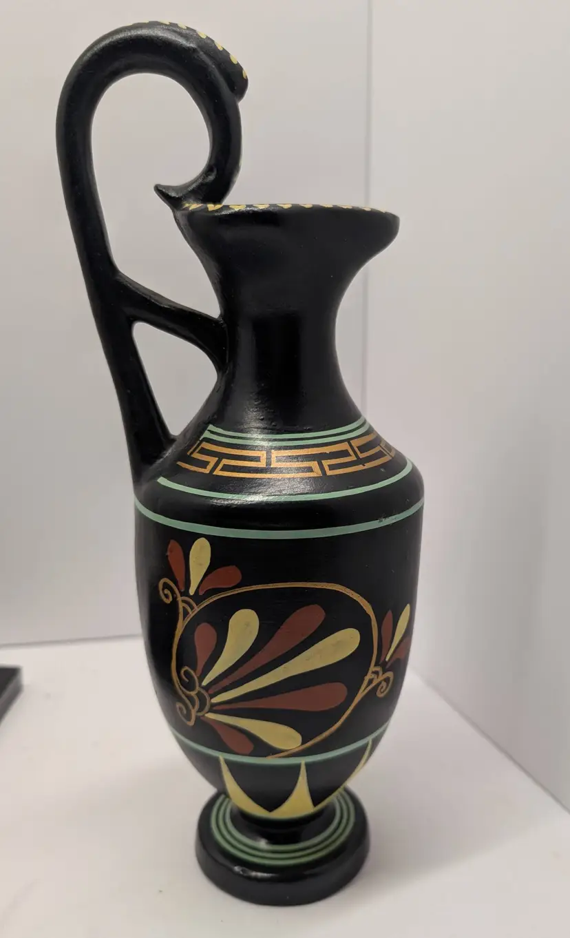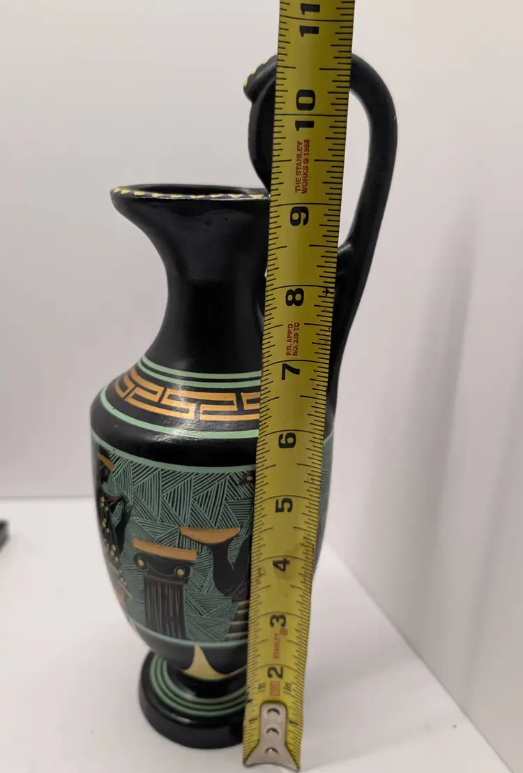 Approximately 10x4 handmade Greece pitcher. No chips or cracks. I do combine shipping and refund overage over $1. Thank you for looking.