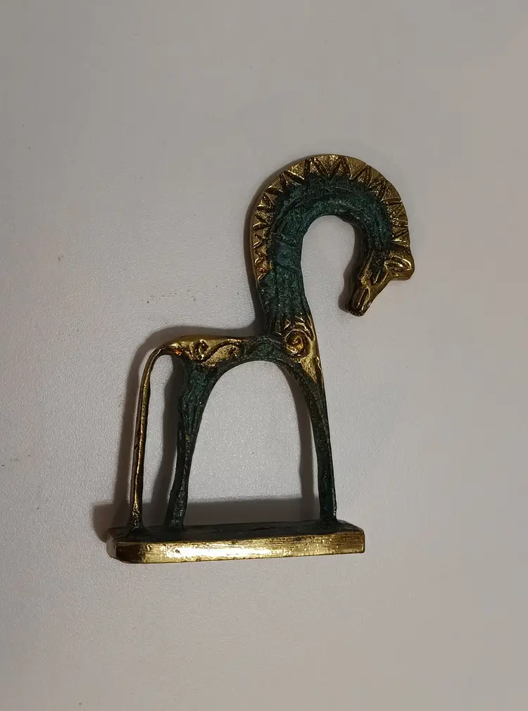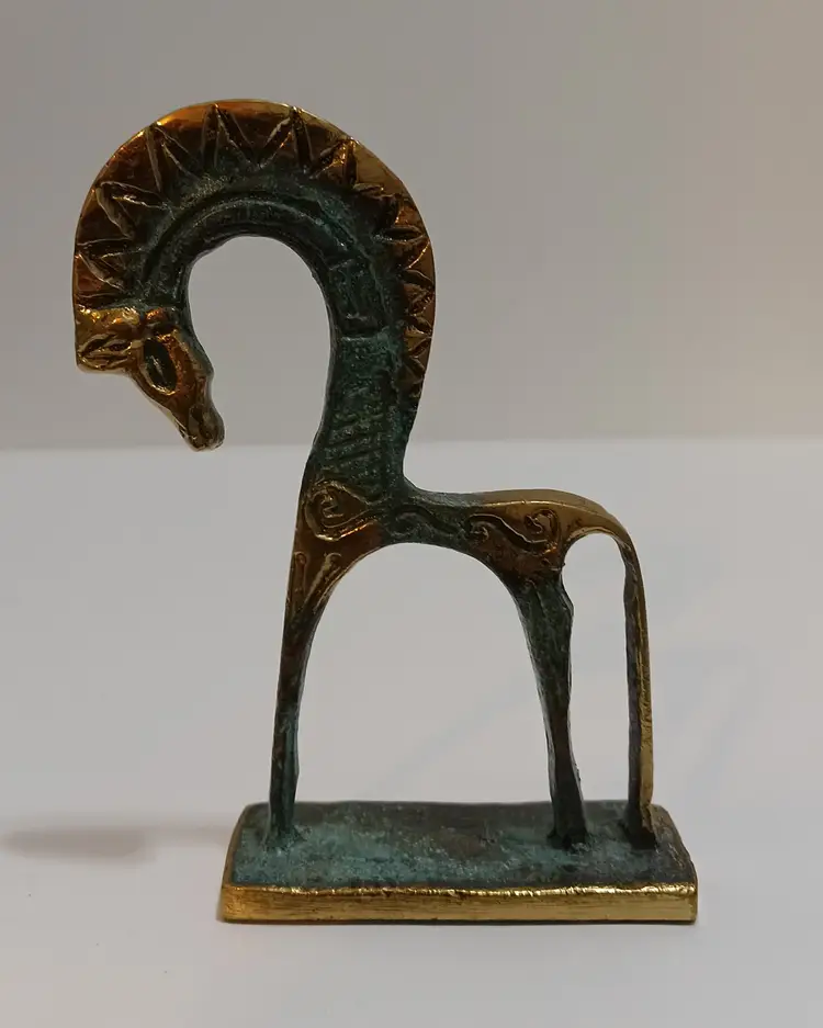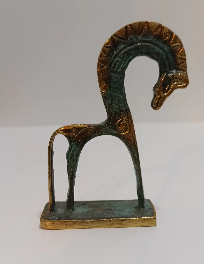 Vintage Bronze Geometric Greek Horse Statue; Beautiful Green Patina; Unique! 4" T x 3.75"W;