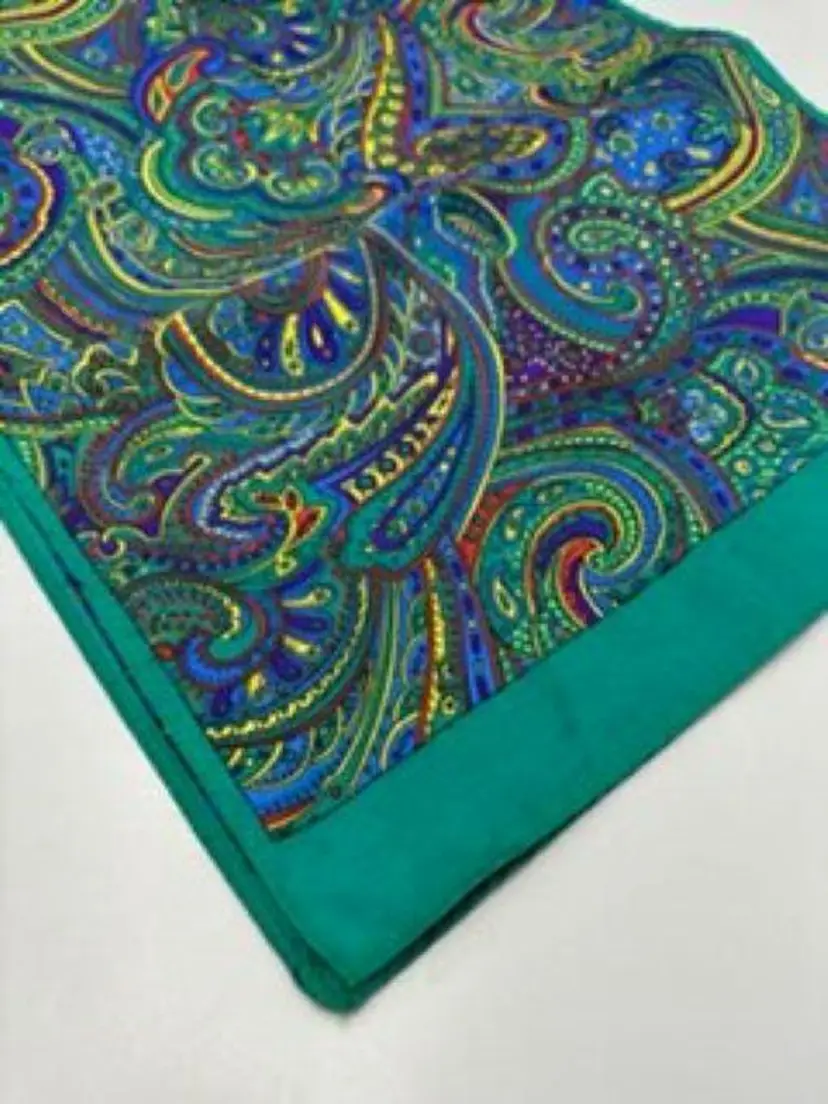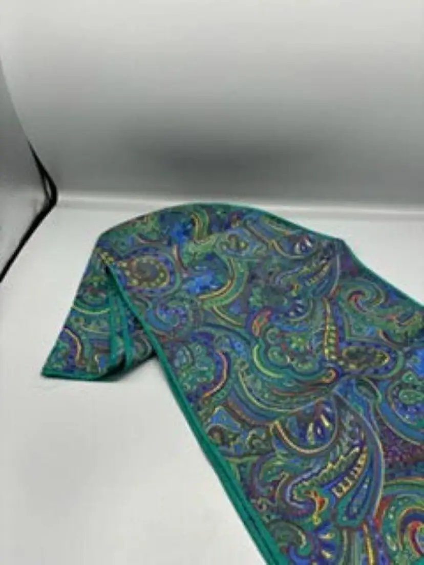 Green blue paisley scarf that would make a statement on any outfit. This is a large scarf that measures 54 x 12.